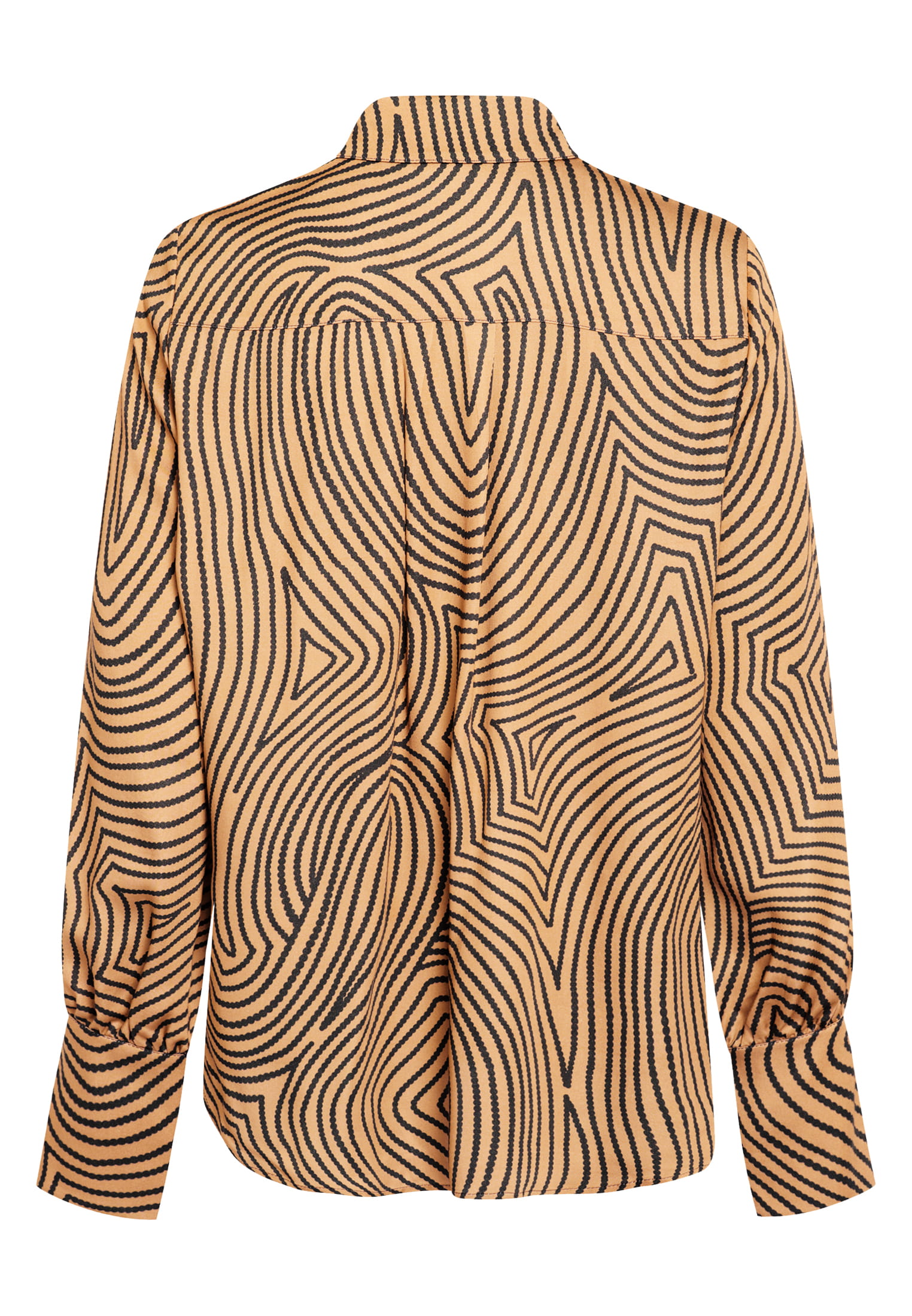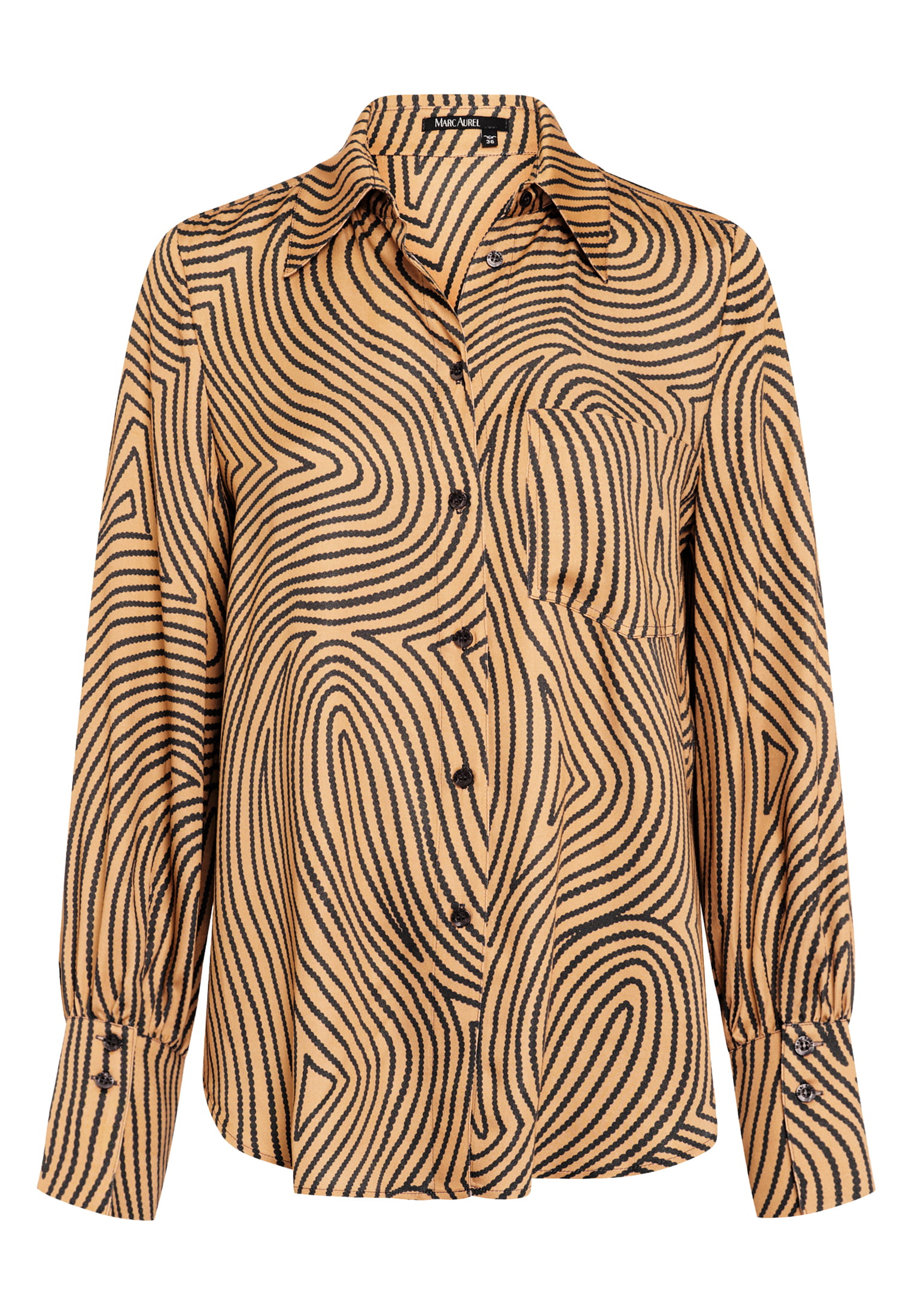 Diese Bluse aus fließender Viskose begeistert mit ihrem grafischen Print und raffinierten Details. Der Blusenkragen sorgt für eine elegante Optik, während breite Manschetten mit Knopfverschluss und eine Brusttasche das Design stilvoll abrunden. Die Rückenpasse mit Falten verleiht einen eleganten Look.