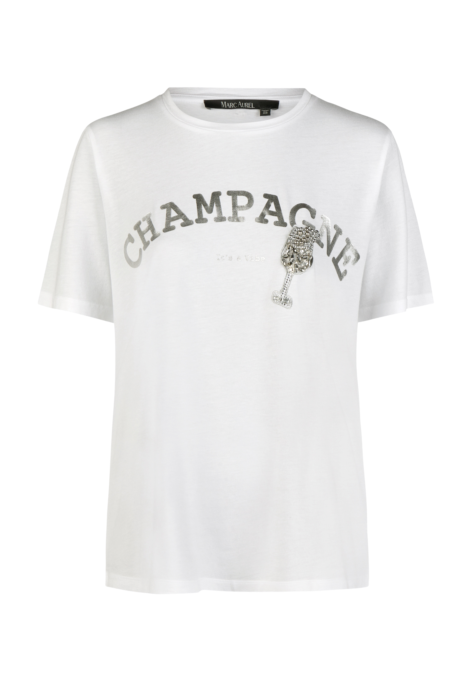 Dieses Rundhalsshirt setzt mit einem glänzenden Foliendruck ein klares Statement. Der klassische Schnitt wird durch den dezenten Glanz-Effekt aufgewertet, der dem Look eine elegante Note verleiht. Ein kleines Logo im Nacken rundet das Design stilvoll ab.