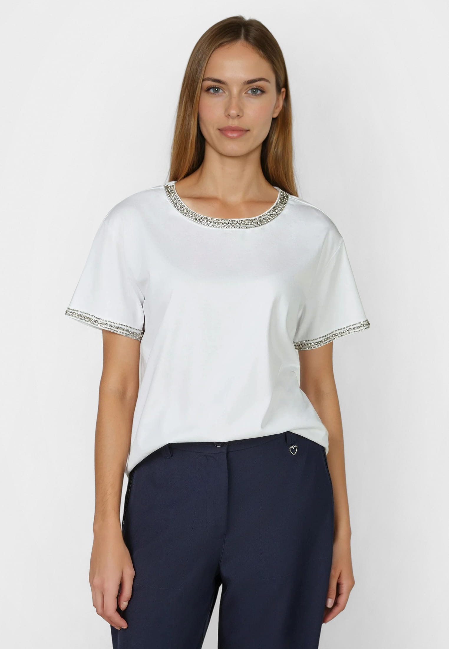 Dieses Shirt überzeugt mit einem edlen Frontdesign aus funkelnden Strasssteinen, das dezente Glanzakzente setzt. Der klassische Rundhalsausschnitt sorgt für hohen Tragekomfort, während das Logo im Nacken das Design harmonisch abrundet.