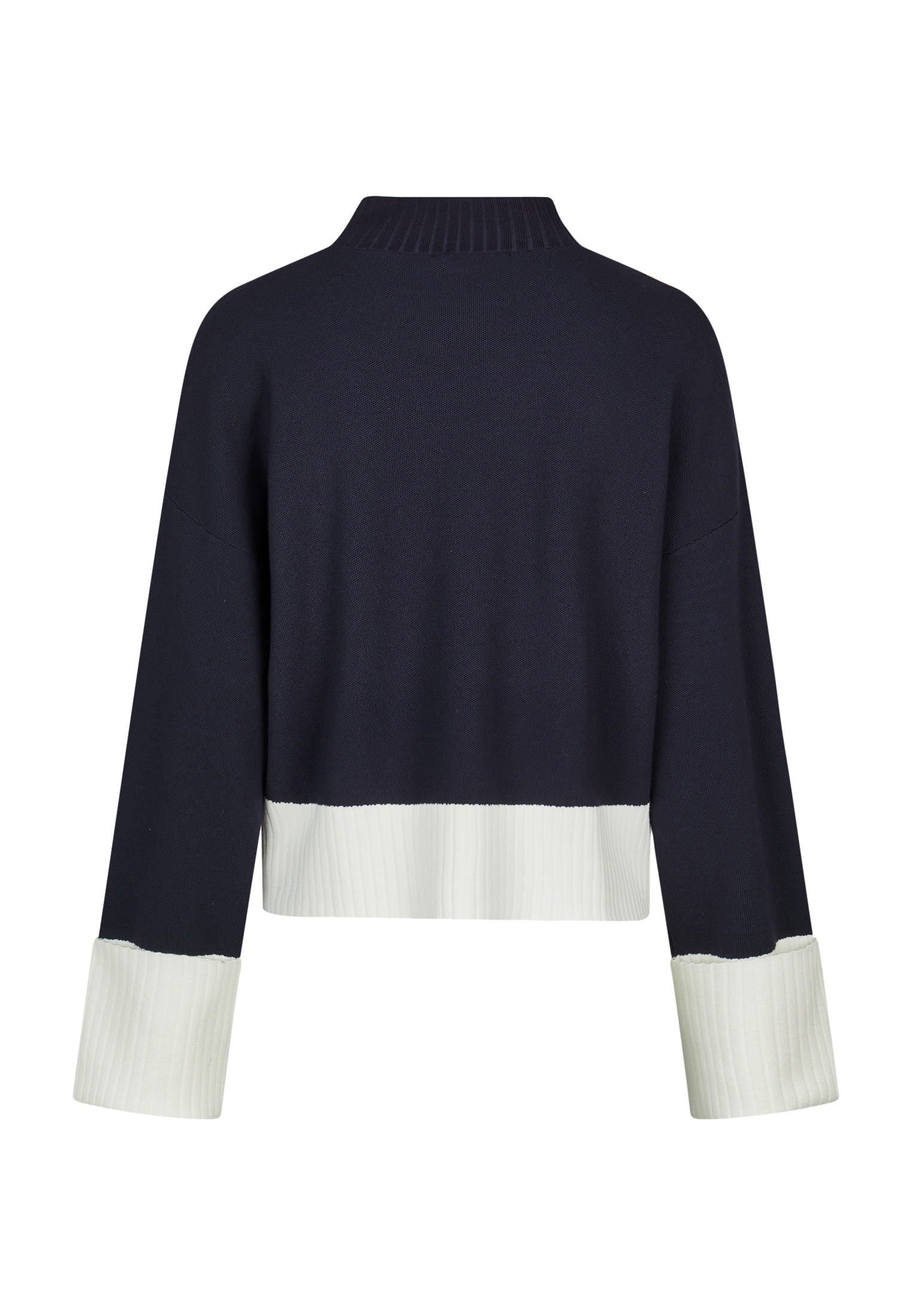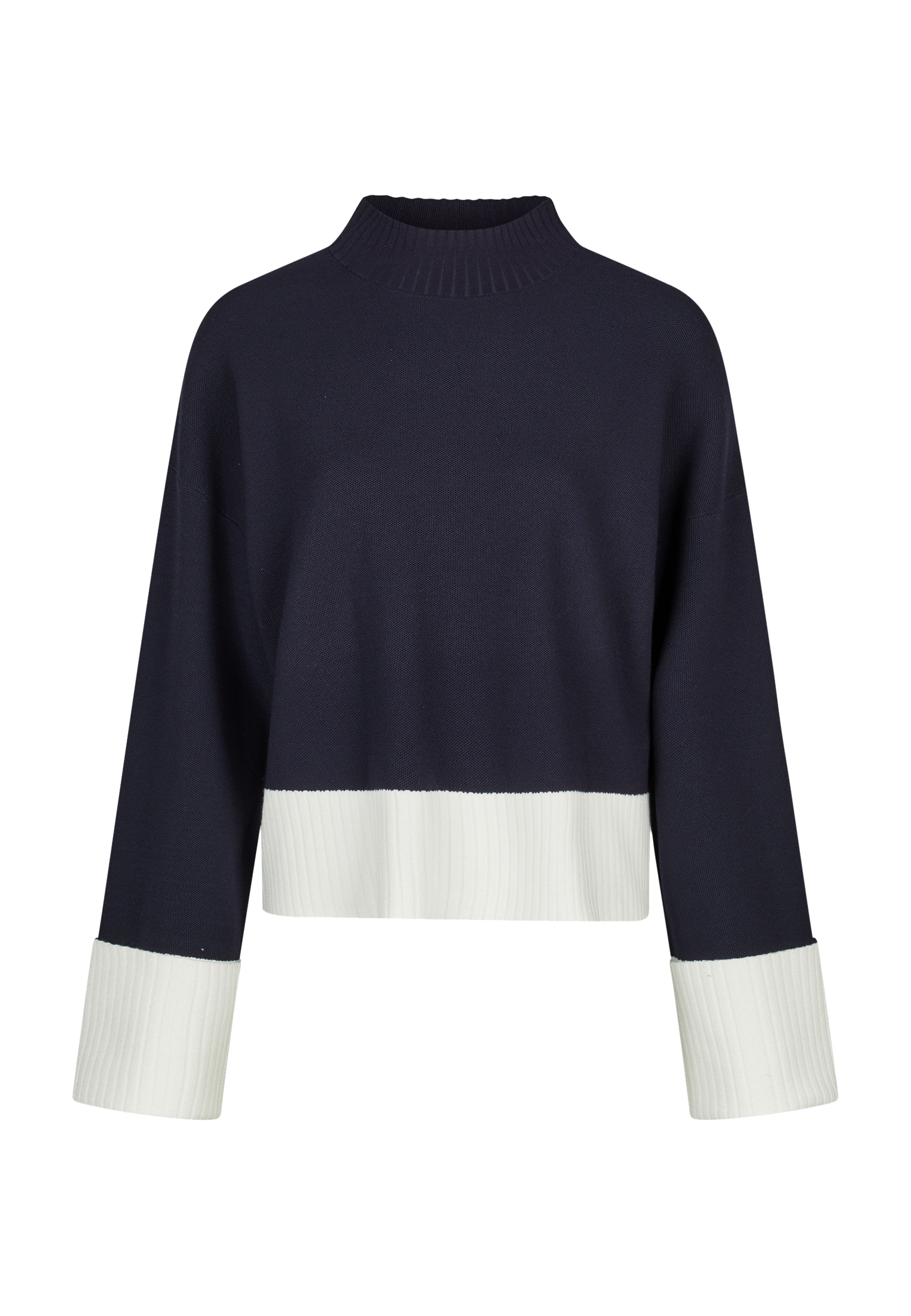 Dieser Pullover mit kompakter Wabenstruktur erhält durch farblich abgesetzte Kanten einen modernen Rahmen. Der Turtleneck und die überschnittenen Schultern unterstreichen den lässig-eleganten Charakter des Designs. Ideal für einen modischen und zugleich edlen Auftritt.