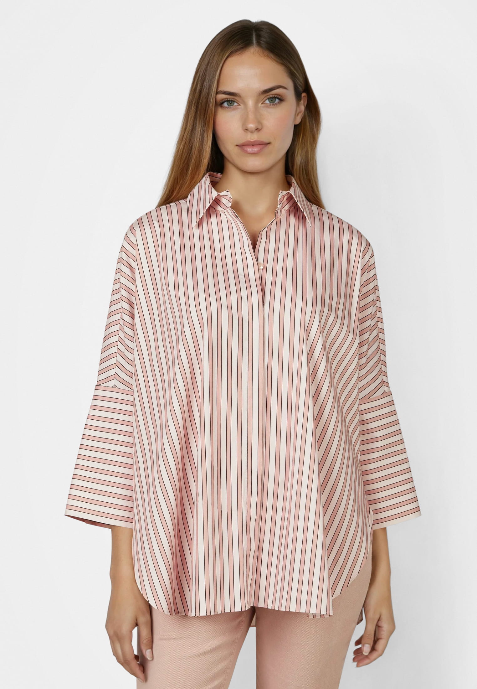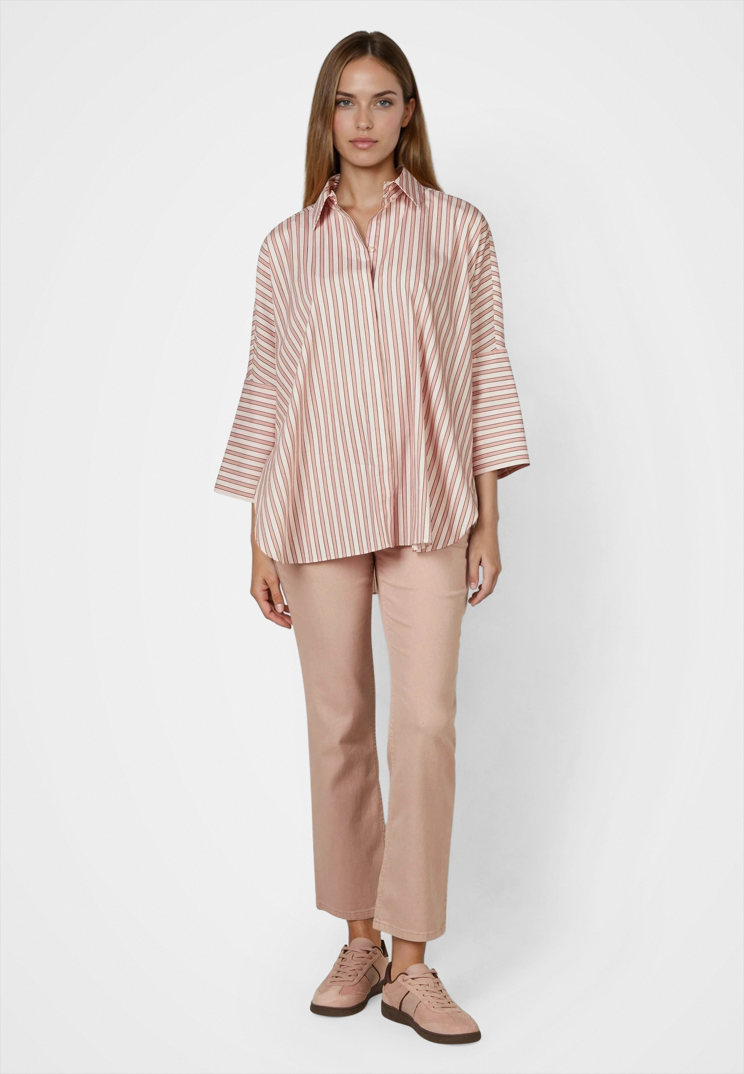 Dieses Poplinhemd kombiniert einen Oversize-Schnitt mit verkürzten Dreiviertelärmeln für einen lässigen und zugleich markanten Look. Schmuckknöpfe setzen stilvolle Akzente, während der klassische Hemdkragen dem Design zeitlose Eleganz verleiht. Ideal für einen modischen und zugleich edlen Auftritt.