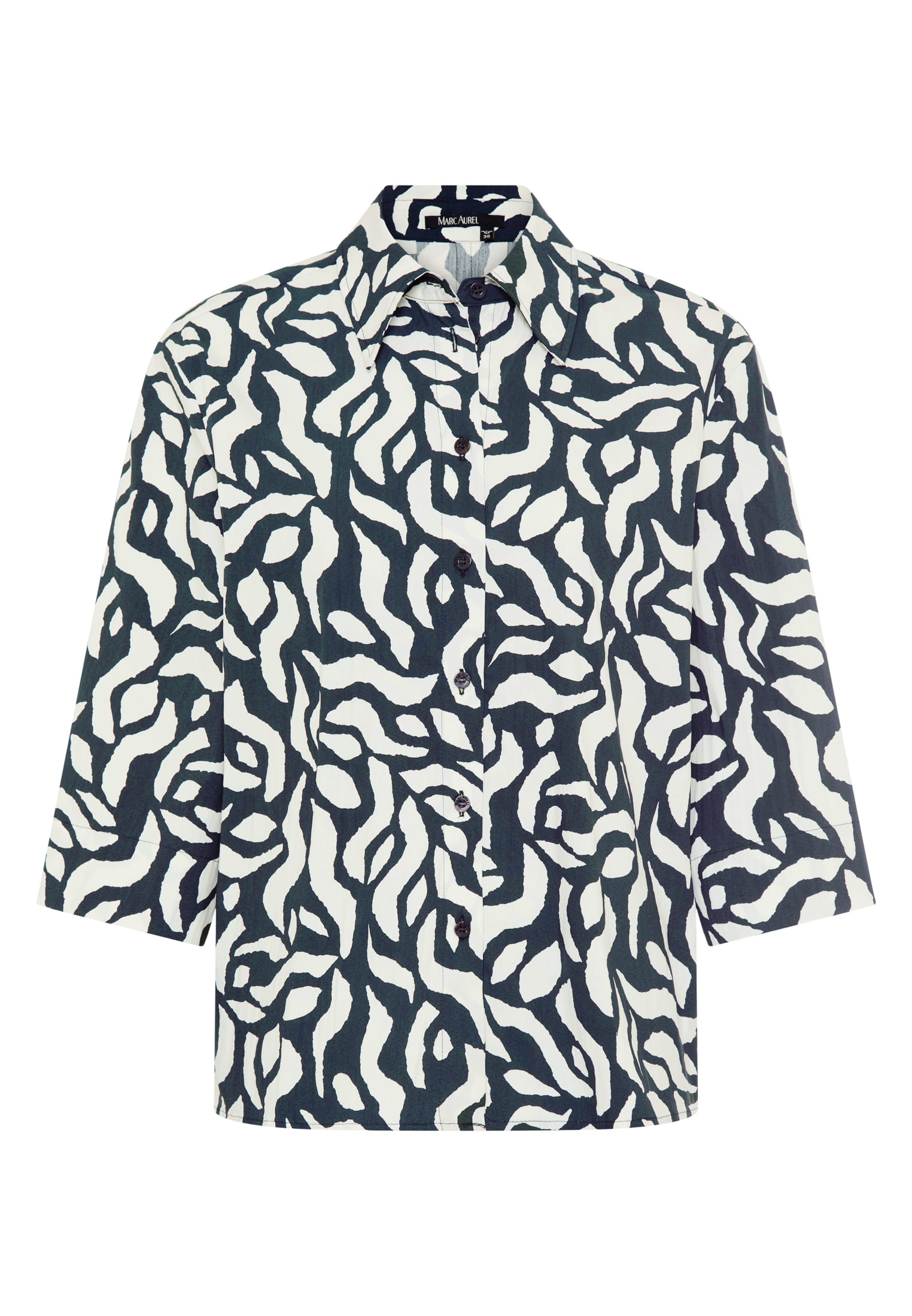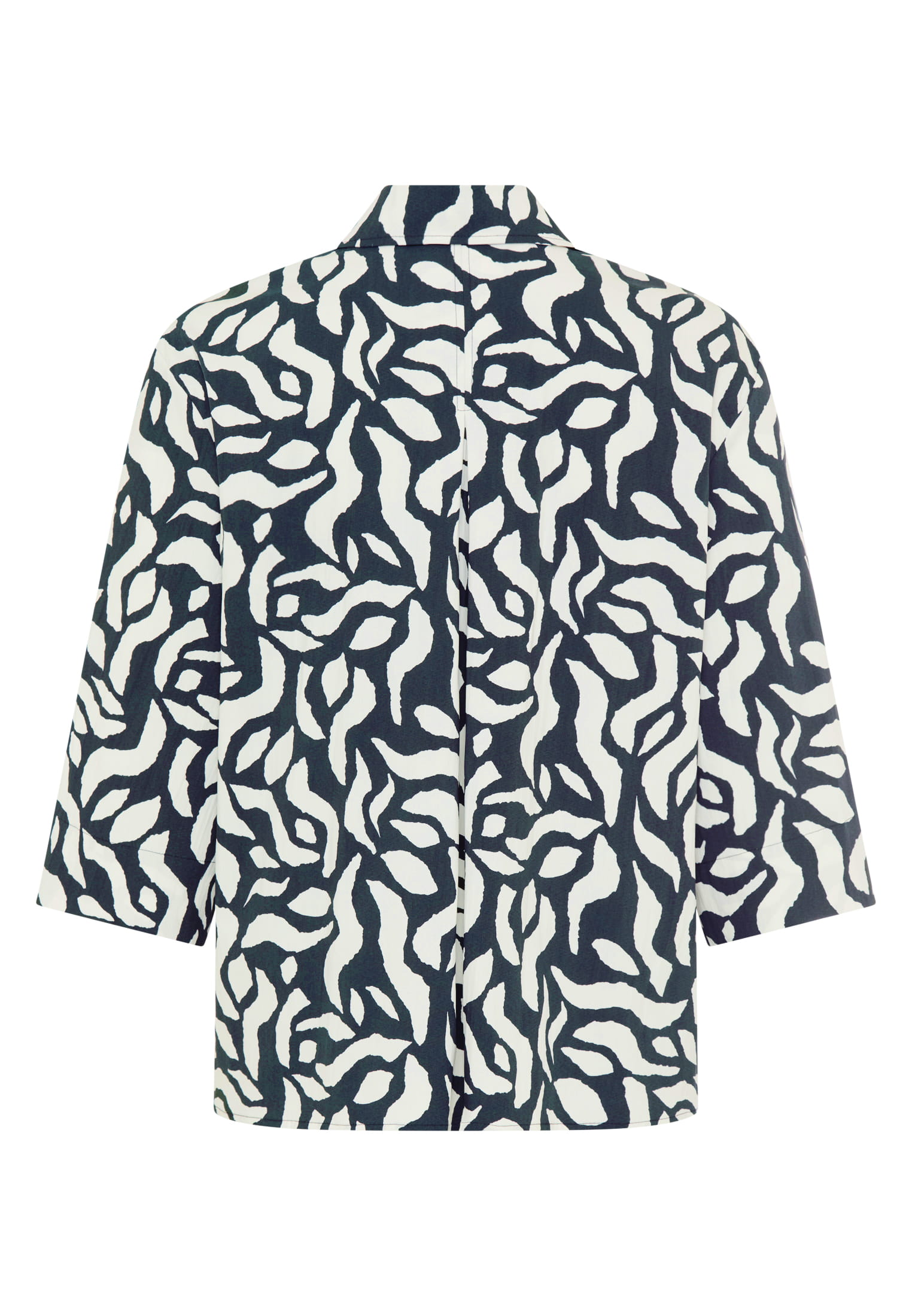 Diese Bluse aus leichtem Baumwoll-Elastan verbindet klassischen Hemdkragen mit 3/4-Ärmeln und überschnittener Schulter. Eine tiefe Rückenfalte sorgt für lockeren Fall, während der Print frische Akzente setzt. Perfekt für einen lässigen und dennoch trendigen Look.
