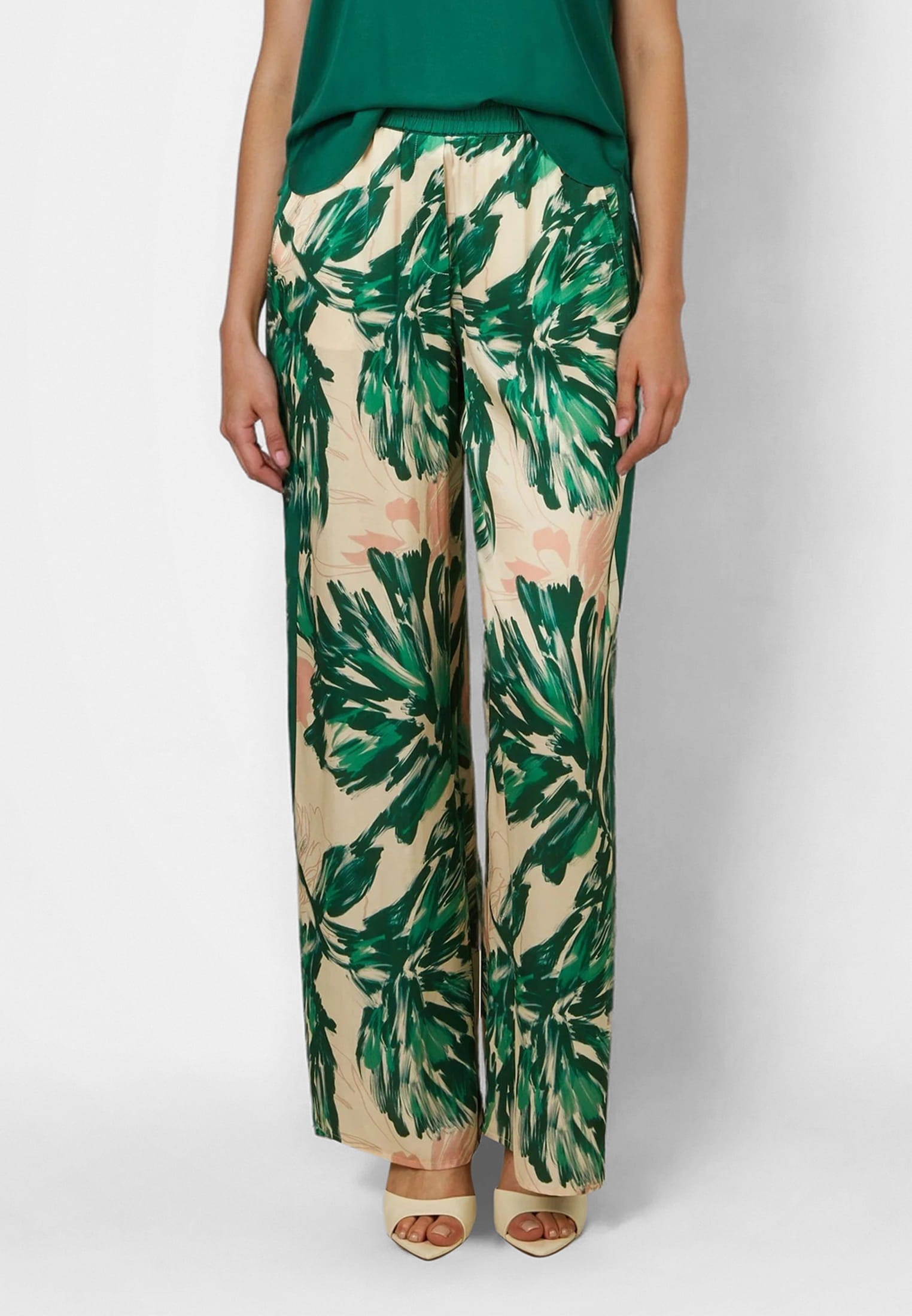 Diese Hose aus bedrucktem Viskose-Satin vereint fließenden Tragekomfort mit modischem Anspruch. Der grüne Print setzt ein frisches Statement, während sportive Details wie Jogger-Bündchen und praktische Seitentaschen für Lässigkeit sorgen. Perfekt für einen lässigen und dennoch trendigen Look.
