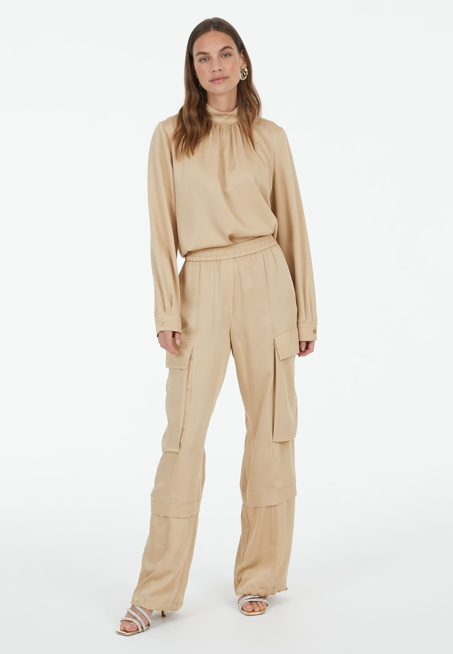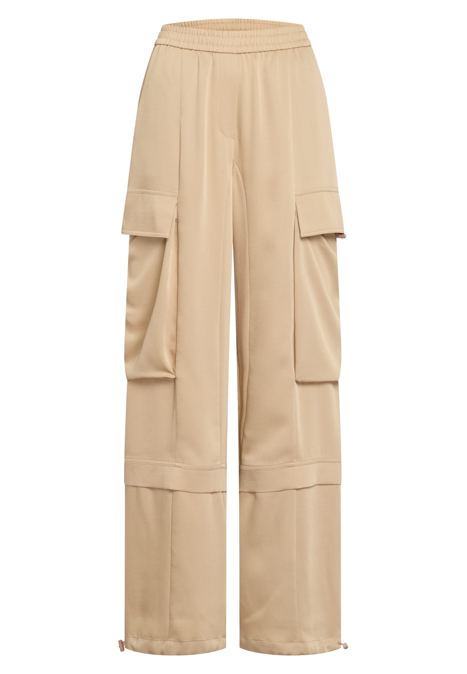 These lightweight trousers in softly draped textured satin combine elegance with casual style. Workwear elements and an adjustable hem width make them an individual styling piece, while the sporty stitching adds a modern touch. Ideal for a stylish and trend-conscious look.