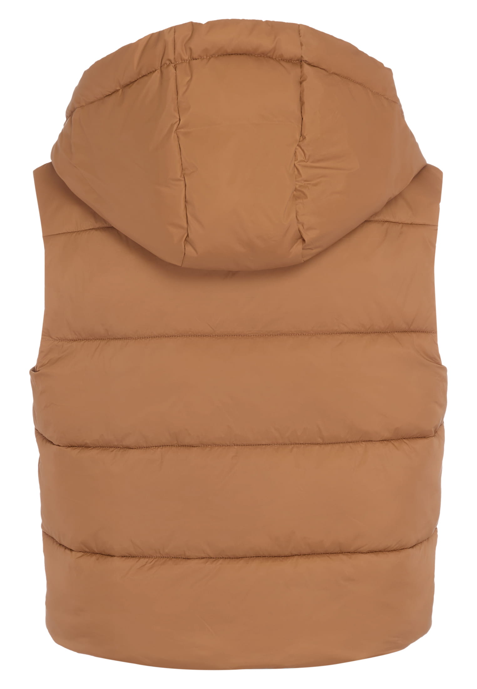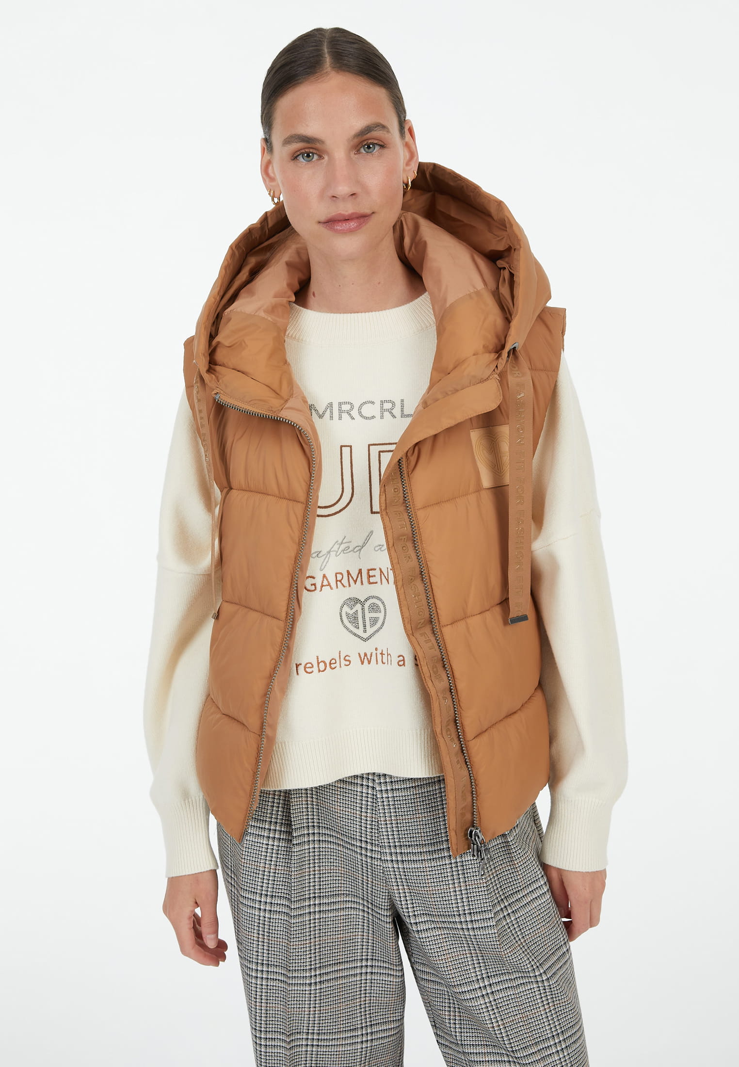 This puffer vest made from water-repellent outdoor material is ideal for casual layering looks. The hood provides additional protection, while logo straps and a logo badge add modern accents. The adjustable hem allows for a flexible fit. Ideal for a fashionable yet sophisticated look.