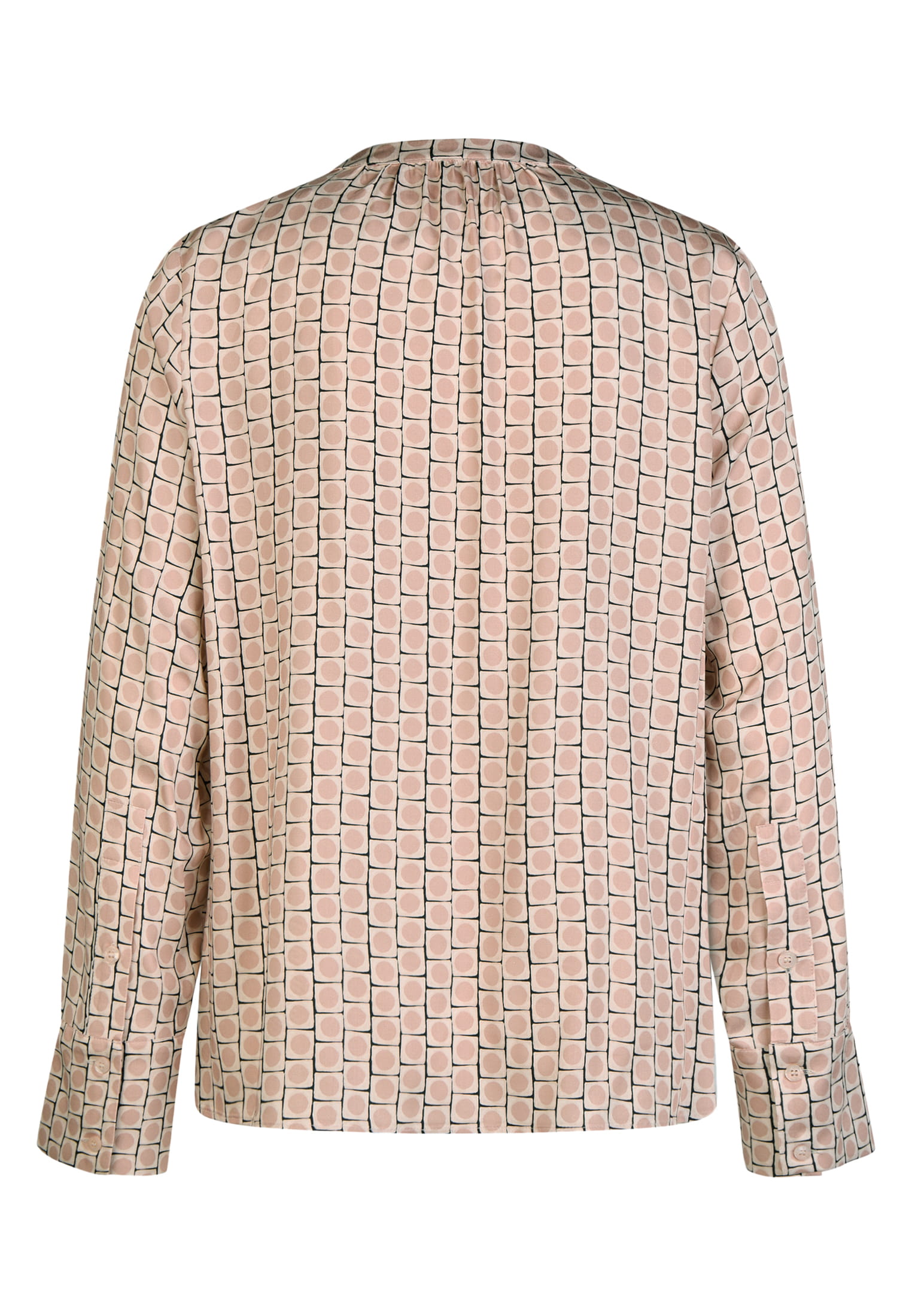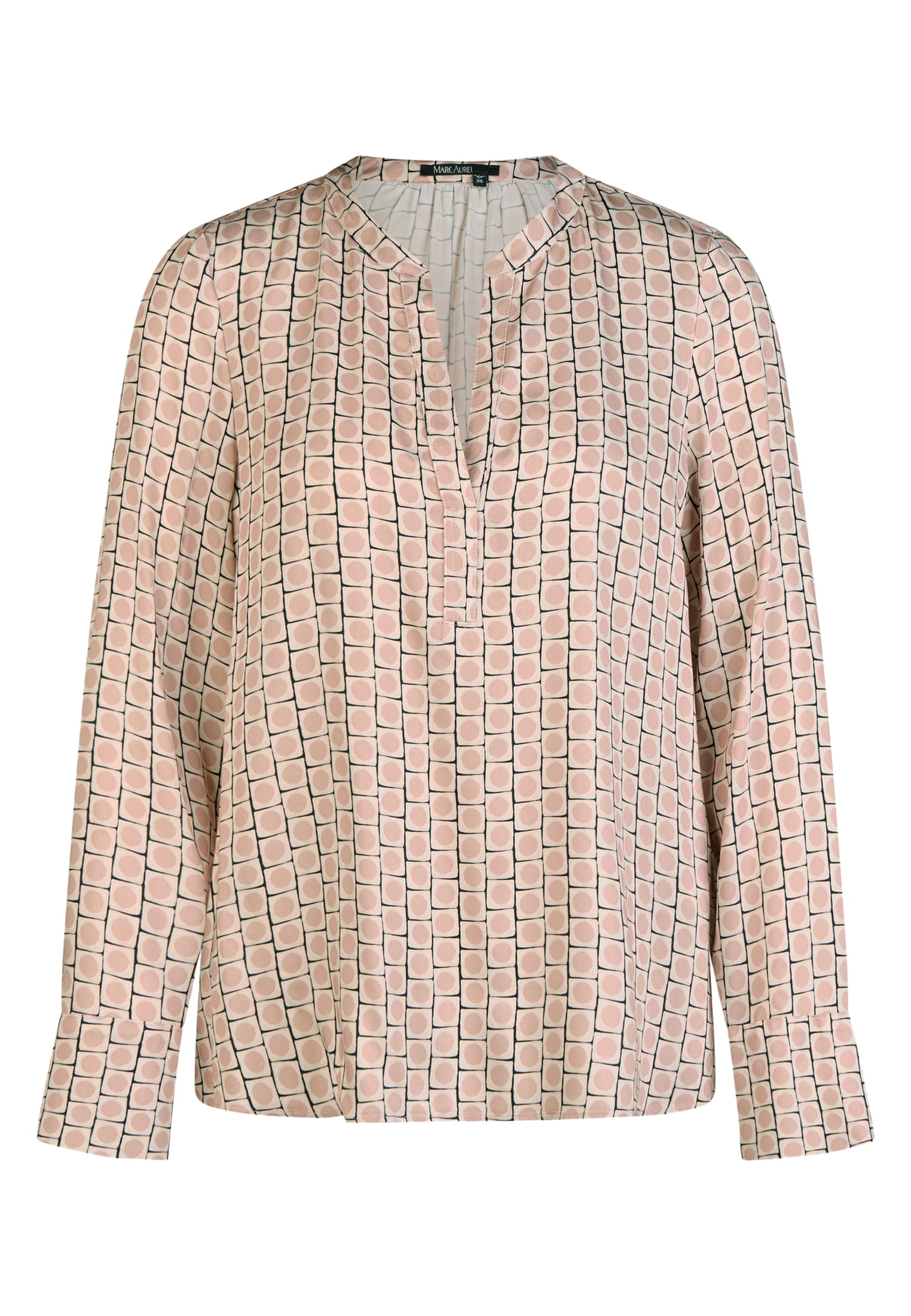 This blouse combines a clean V-neck with a modern graphic all-over print. The lightweight viscose fabric gives it a comfortable drape, while buttoned cuffs and a rounded hem harmoniously round off the design.