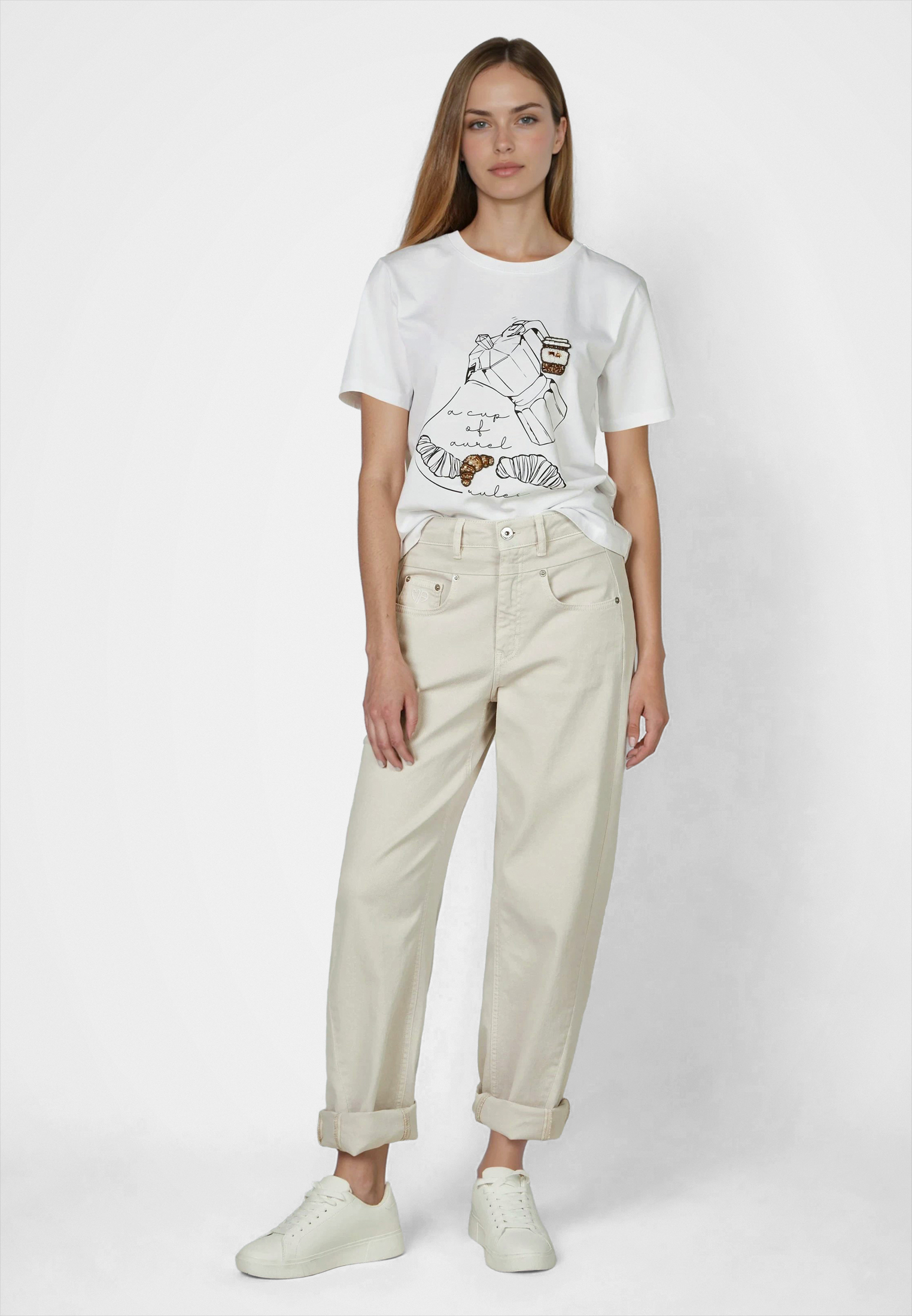 A shirt with a special texture. The sturdy cotton fabric feels pleasant to the touch, while beaded embroidery stylishly adorns the front. The classic round neckline and logo on the back complete the elegant design.