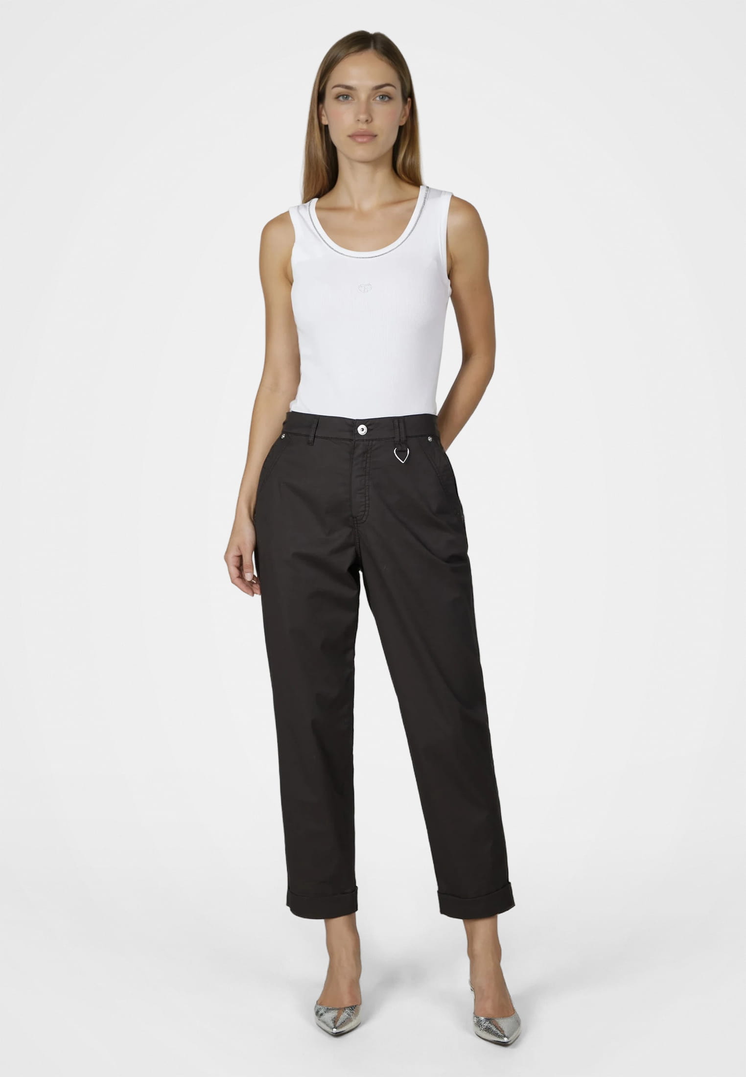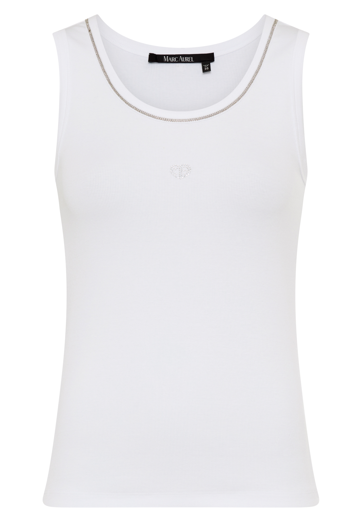 This crew neck shirt brings subtle sophistication to everyday wear with its fine ribbed fabric and sparkling heart made of hotfix stones. A small metal logo on the hem elegantly rounds off the design and adds a touch of class to the look.