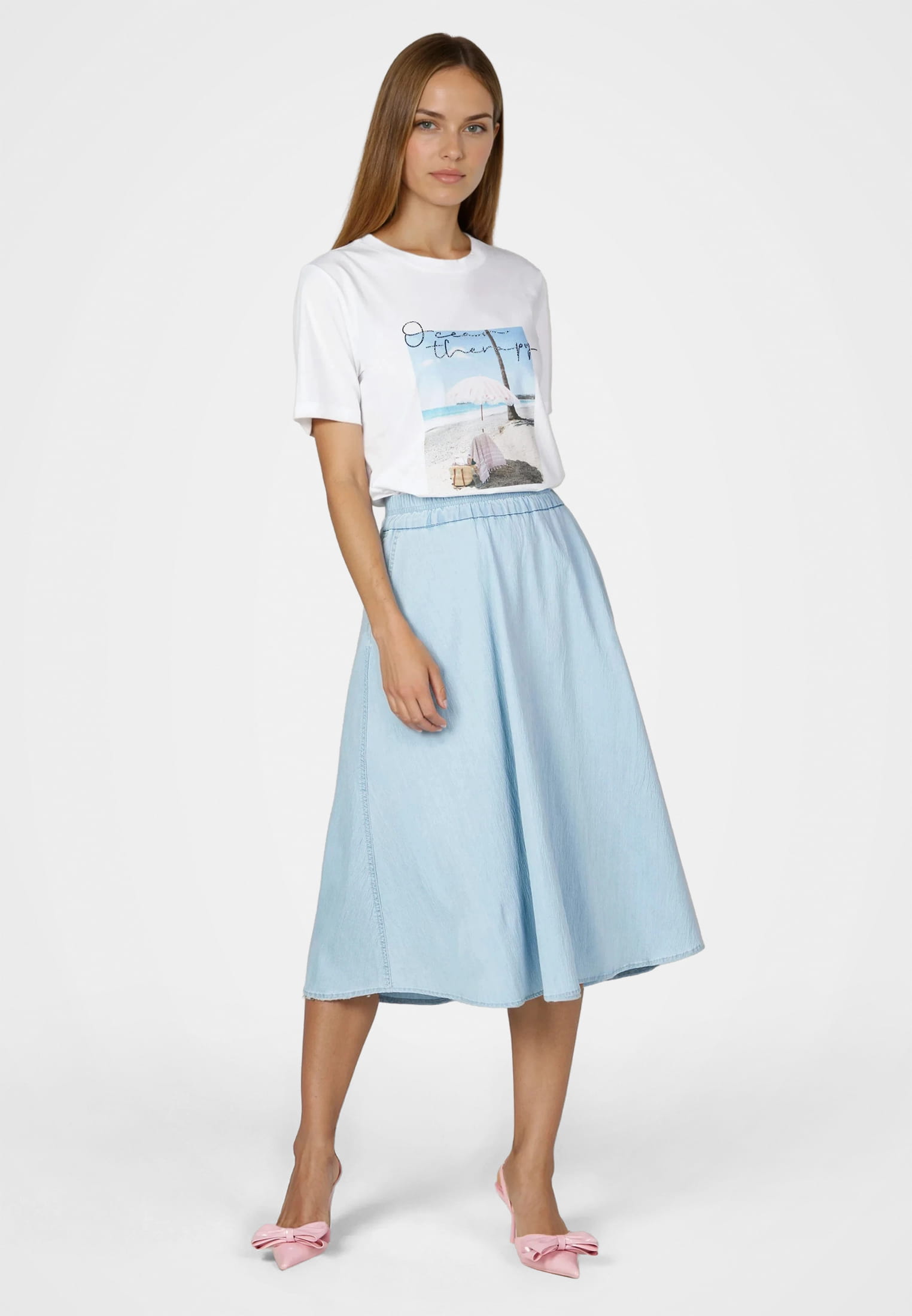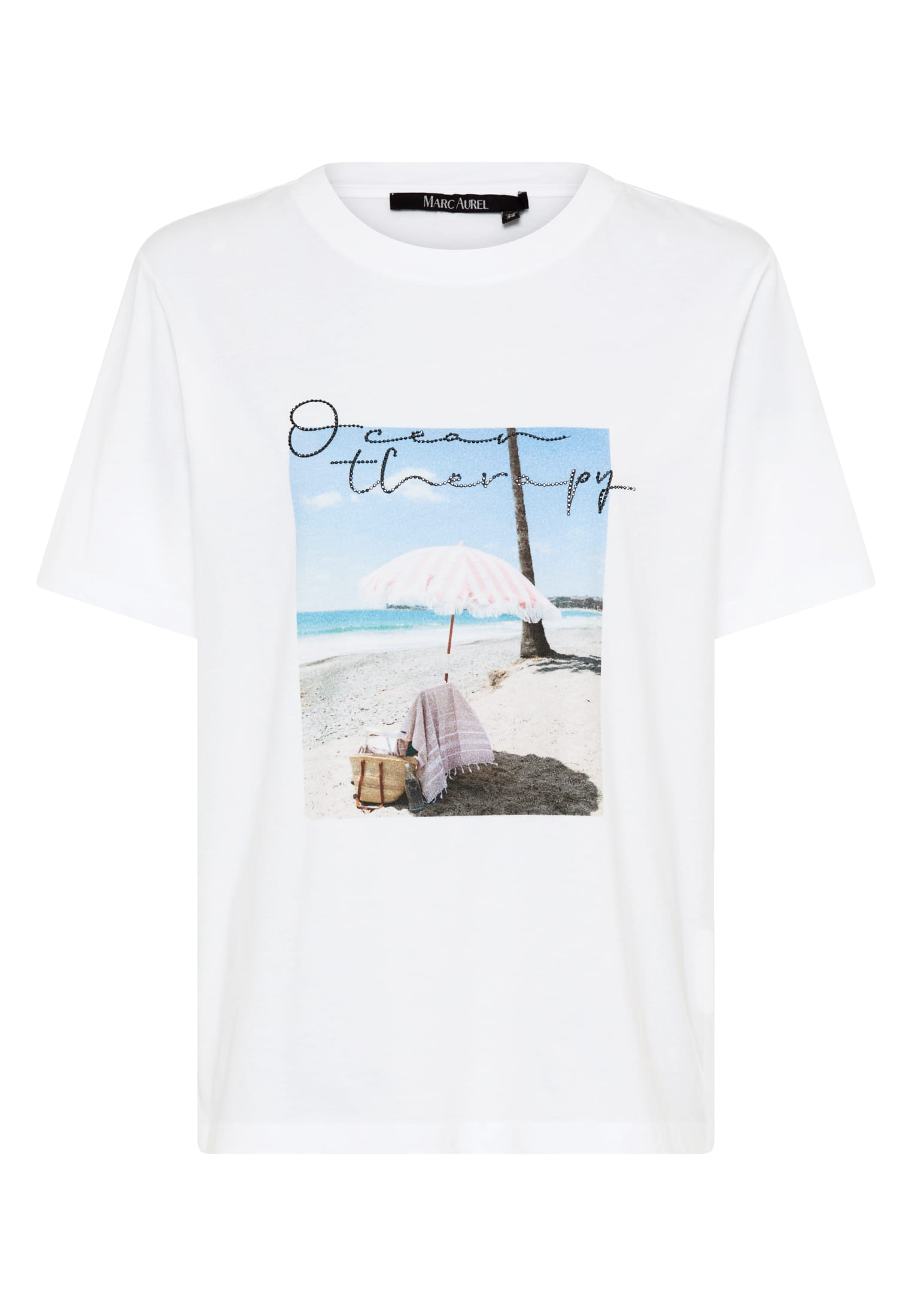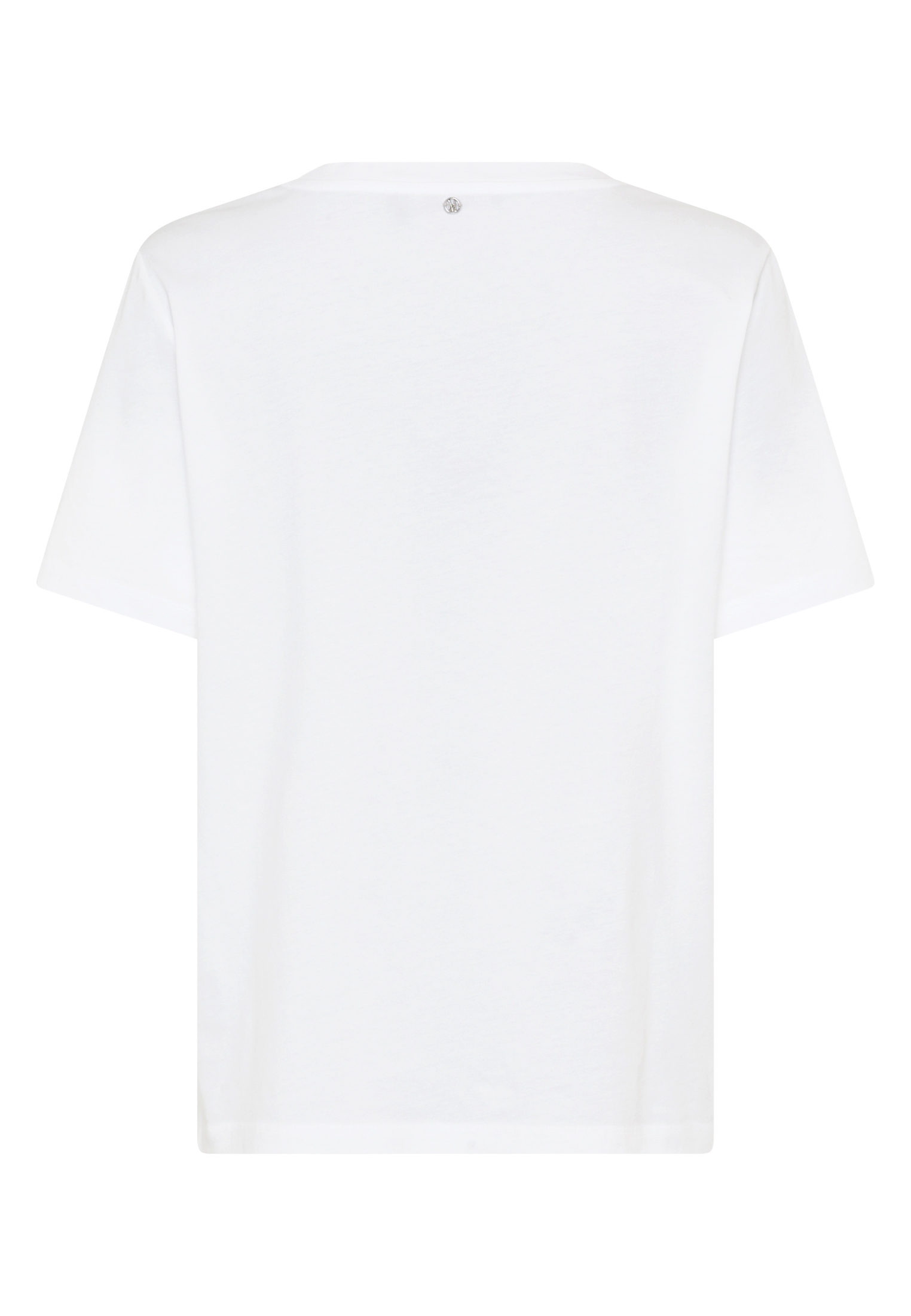 This shirt makes a bold statement with a photo print on the front. The classic round neckline adds a touch of calm to the look, while a subtle metal logo emphasizes the style. For casual combinations with a graphic effect. Perfect for a stylish and modern look.