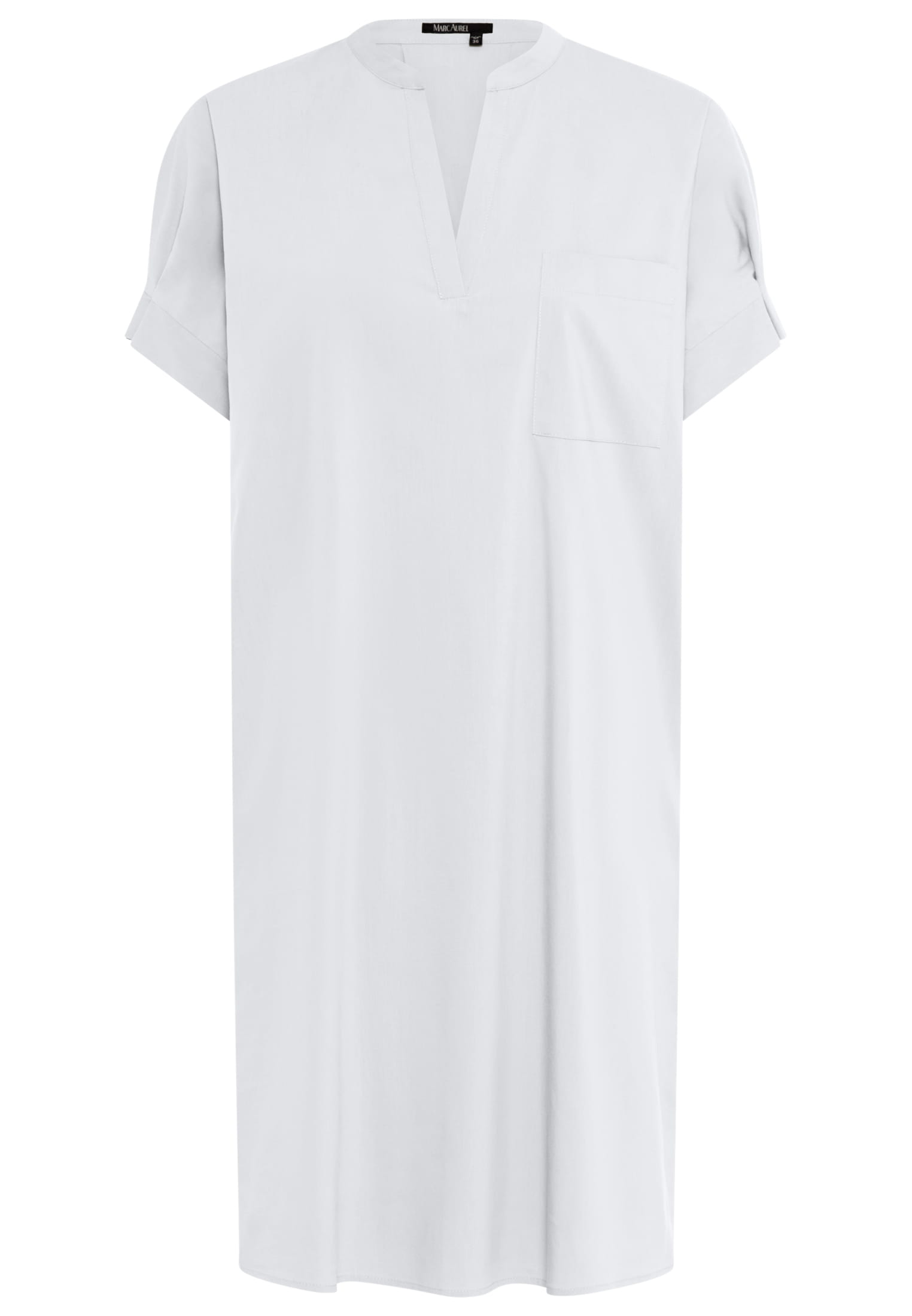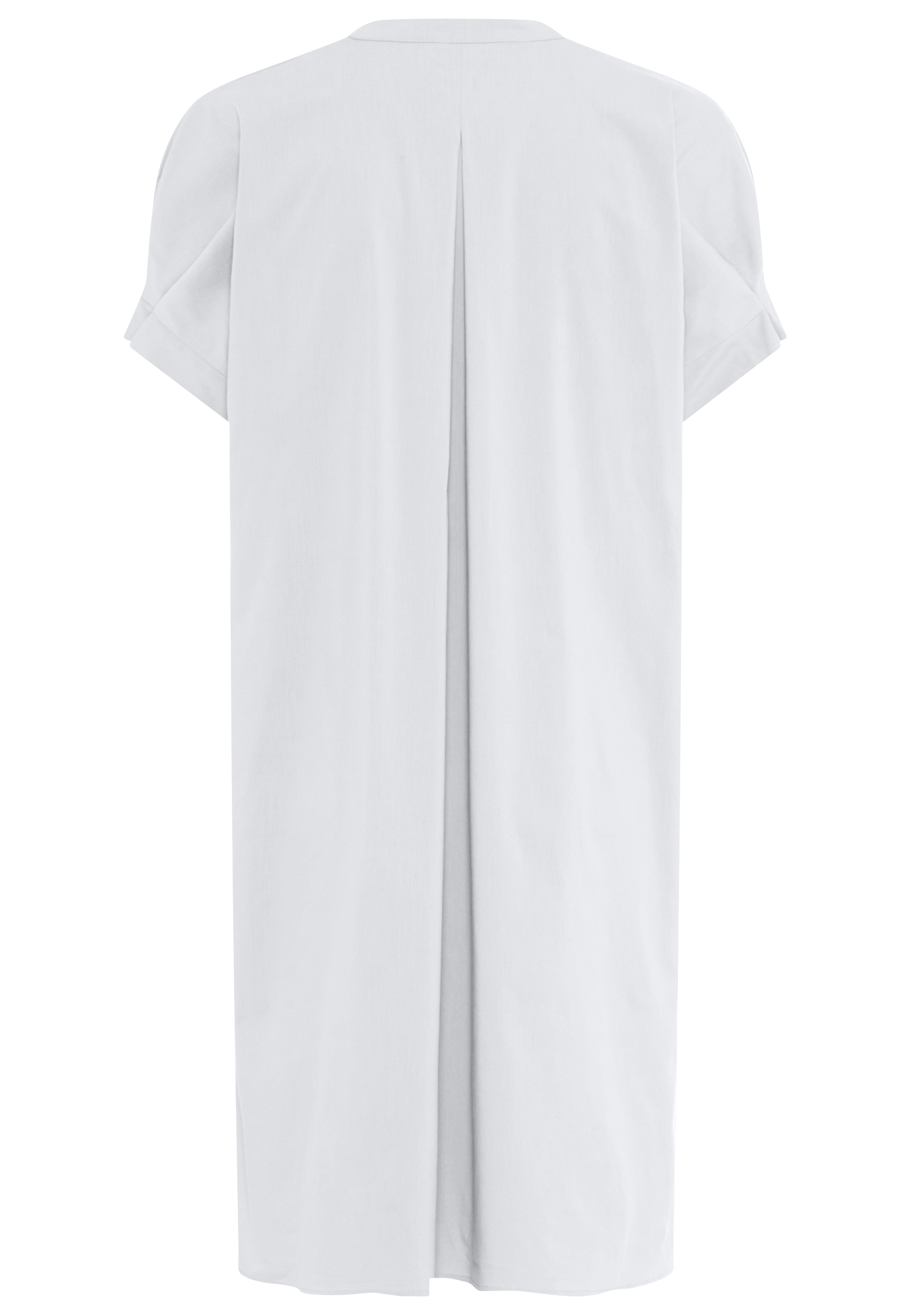This poplin dress with a V-neckline made from a lightweight cotton blend features a patch breast pocket and delicate embroidery. The V-neckline creates a clean line, while pleats at the cuffs add a subtle, elegant touch to the sleeves.
