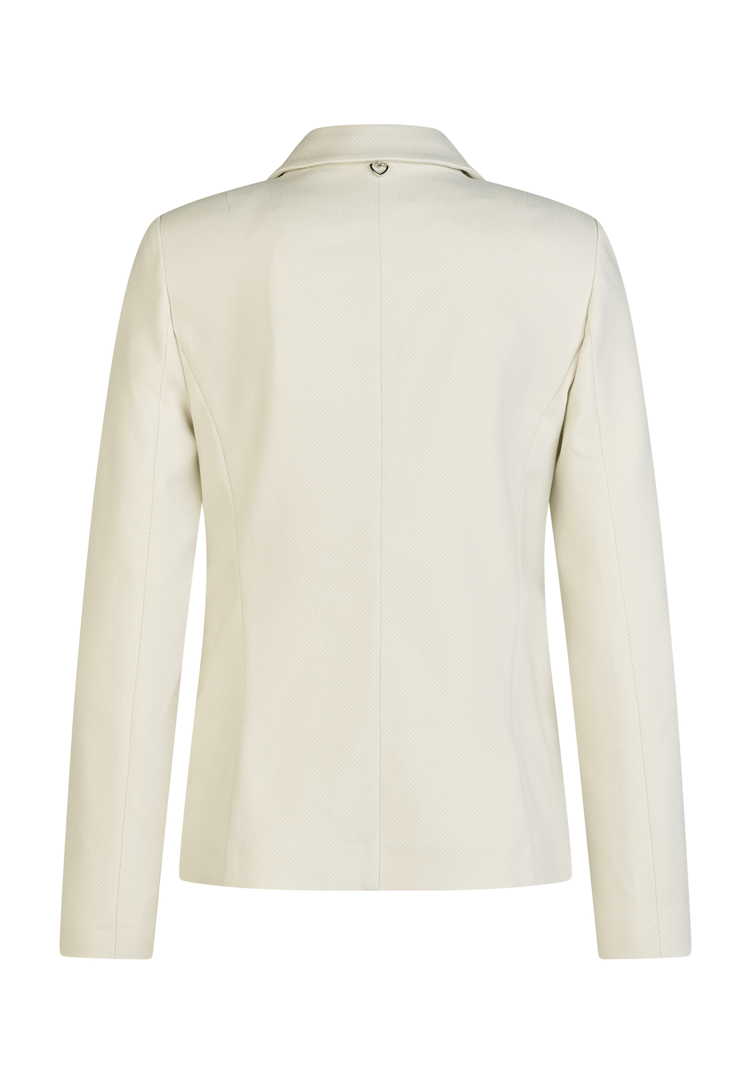 Finely patterned viscose jacquard meets a modern cut with a falling lapel. The blazer impresses with its stylish restraint and is charmingly complemented by lovely details such as patch pockets and a small metal pendant.