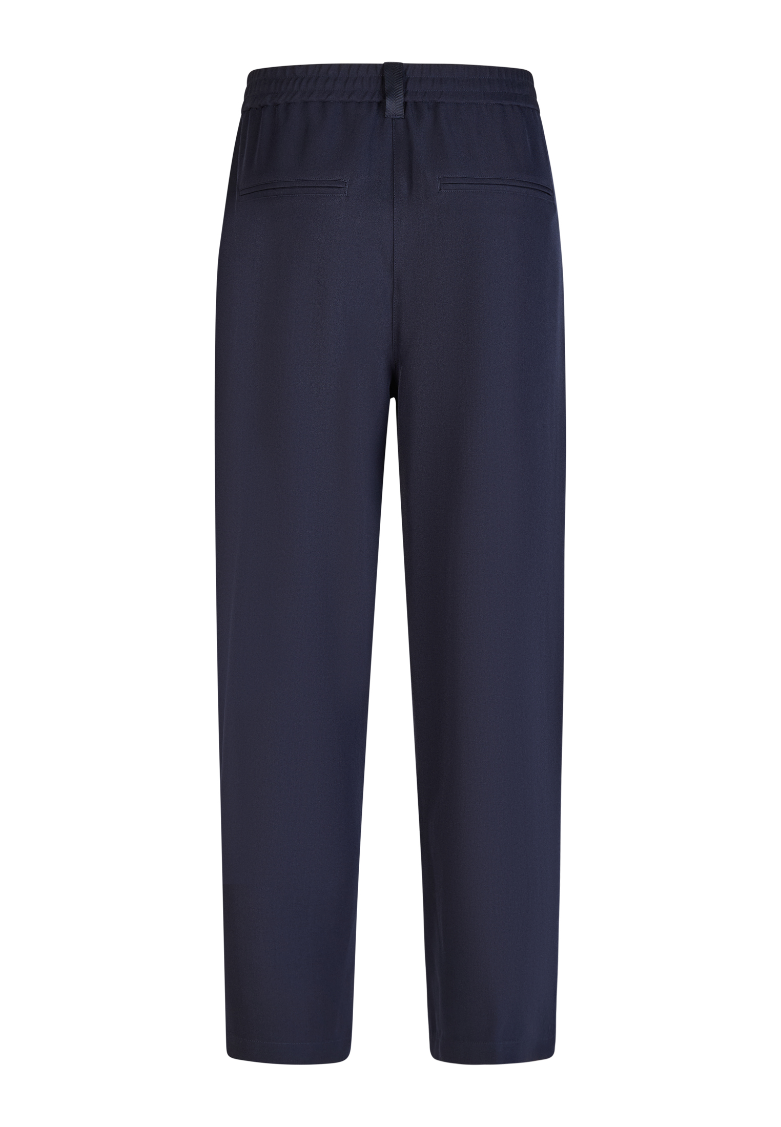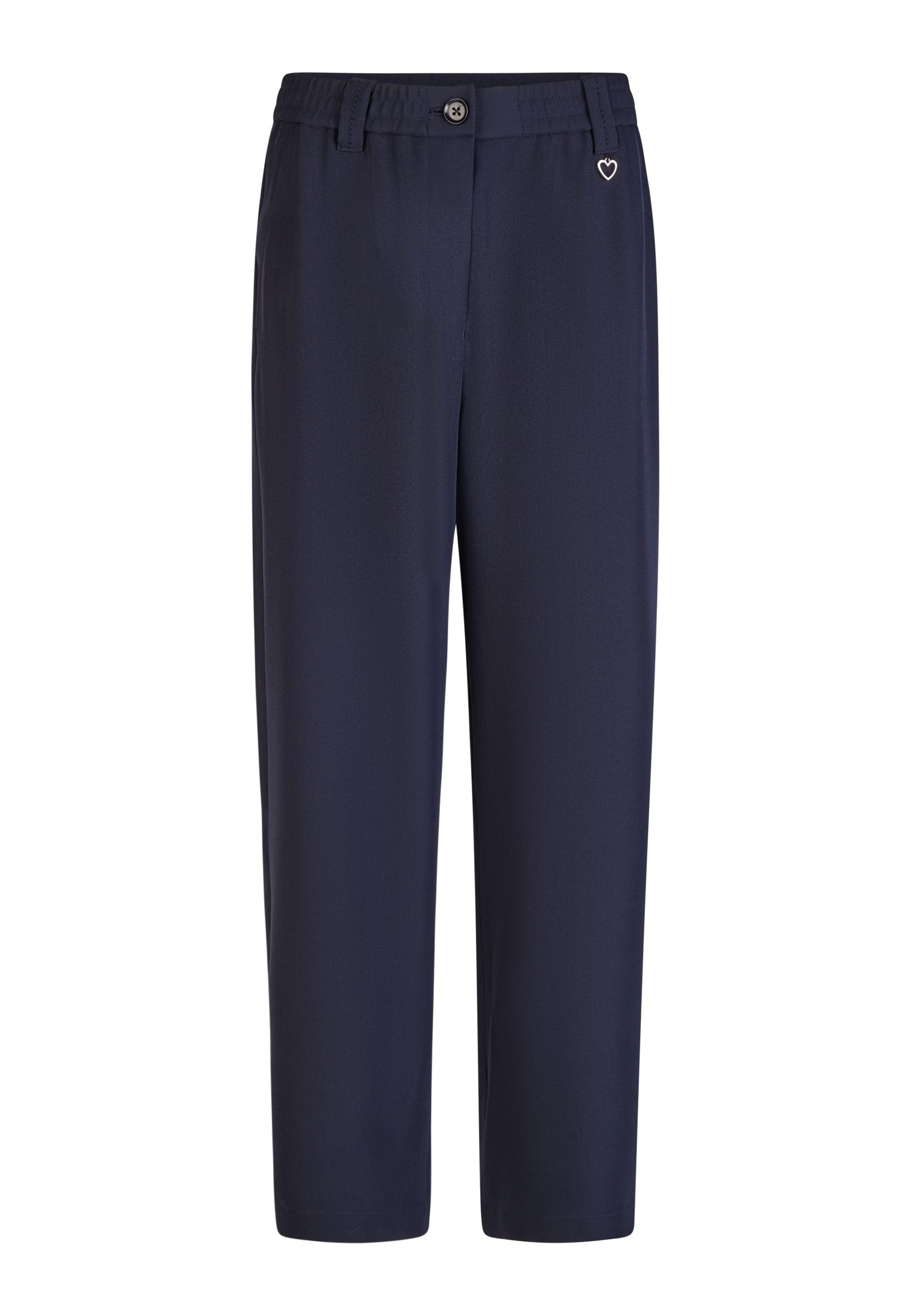 These pants are made from textured, easy-care fabric that drapes softly and is comfortable to wear. The cropped cut with wide legs creates a modern, airy look. Side pockets and an elastic jogger cuff offer additional comfort, while a small metal heart pendant adds a charming accent.