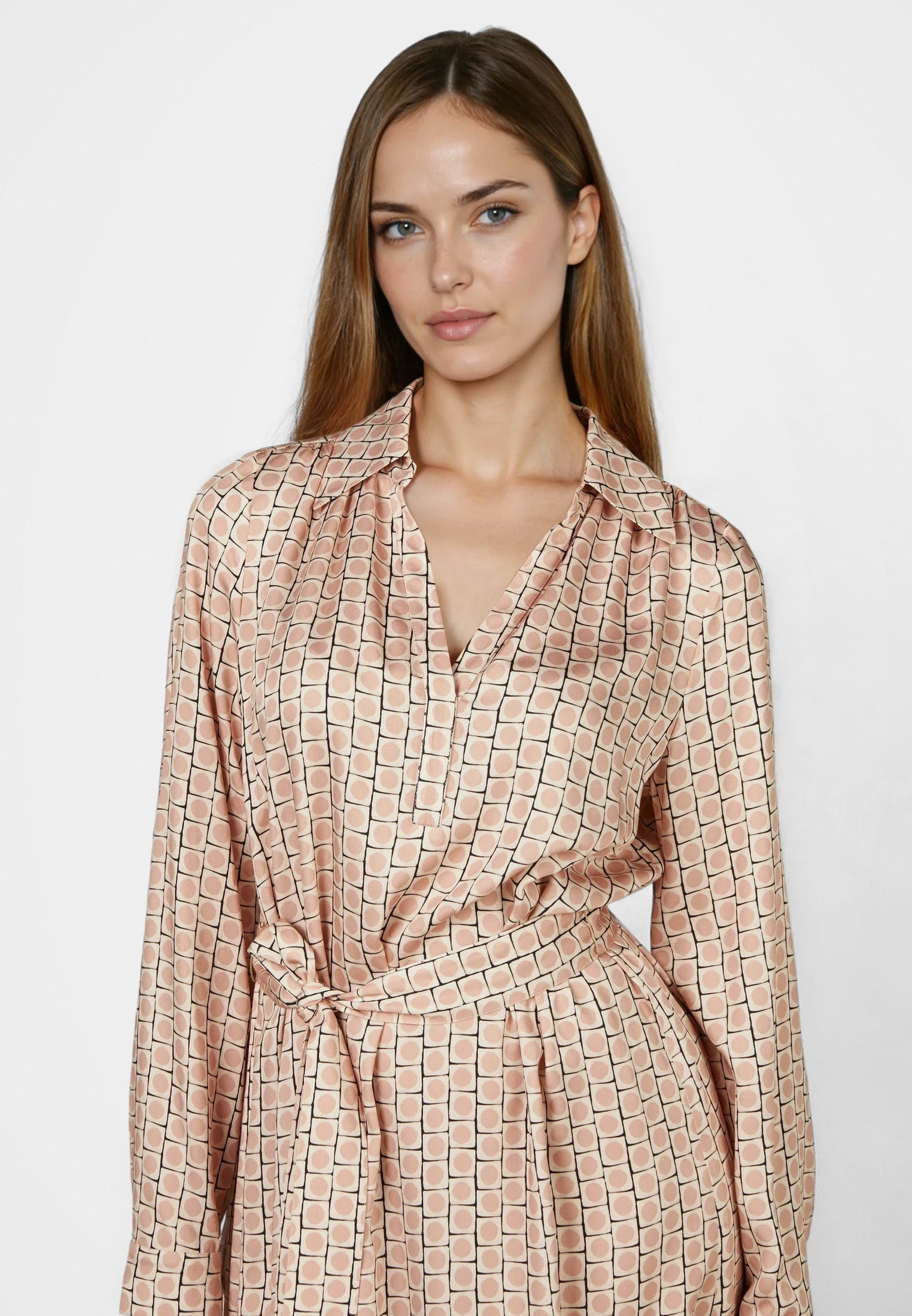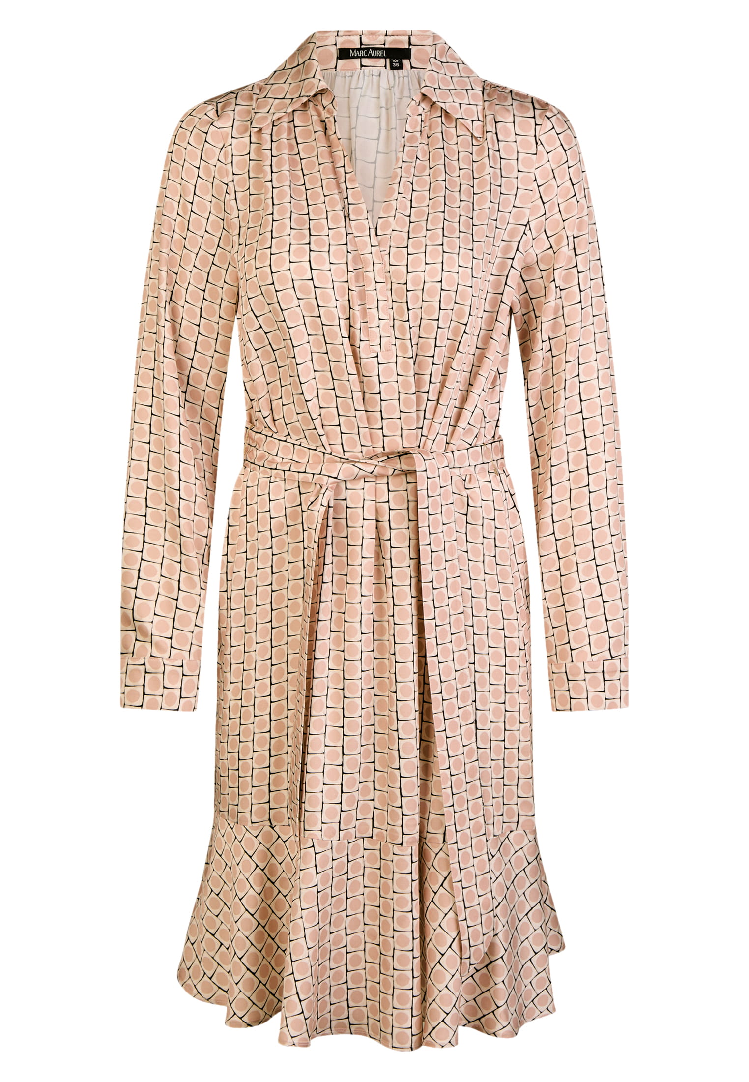 This viscose satin dress with flounce details combines a flowing feel with a feminine silhouette. The V-neckline elegantly opens up the design, while a removable belt accentuates the waist. Button-fastening cuffs complete the look. Ideal for a fashionable yet elegant appearance.