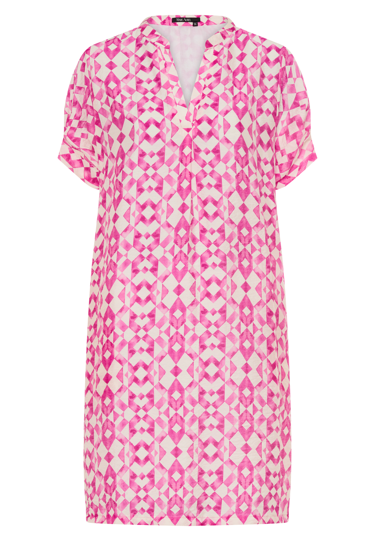 This dress, made from a soft modal blend, has a flowing and pleasantly light feel. The V-neckline and integrated lining ensure comfort, while pleats at the cuffs add a touch of refined sophistication to the design. Perfect for a stylish and modern look.