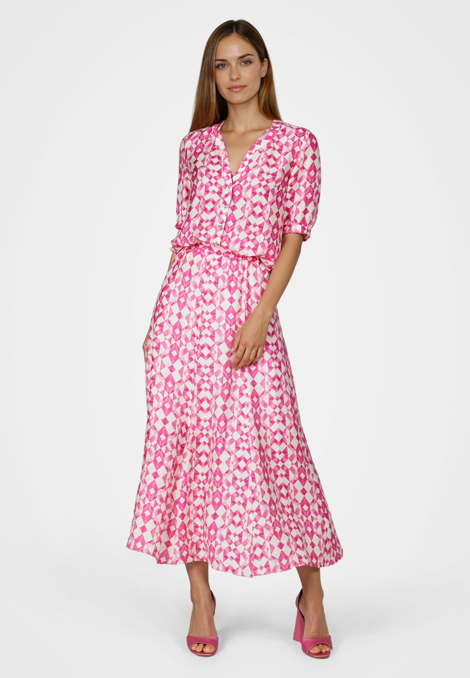 Midi skirt with pink print