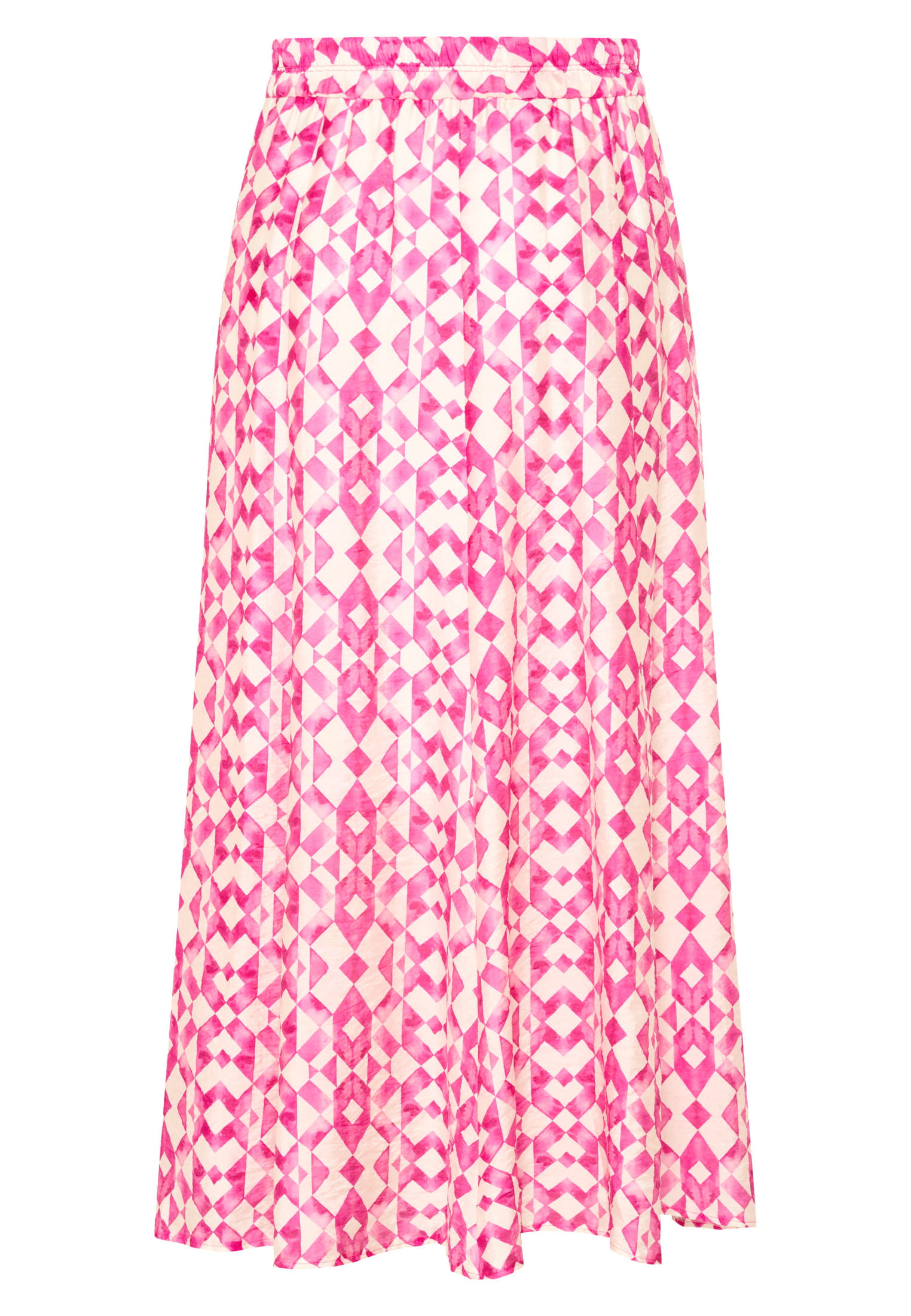 This midi skirt made from a transparent modal blend adds movement to the design with its panel style. The elastic waistband and soft lining ensure comfort, while the pink print adds color to the outfit. Perfect for a casual yet trendy look.