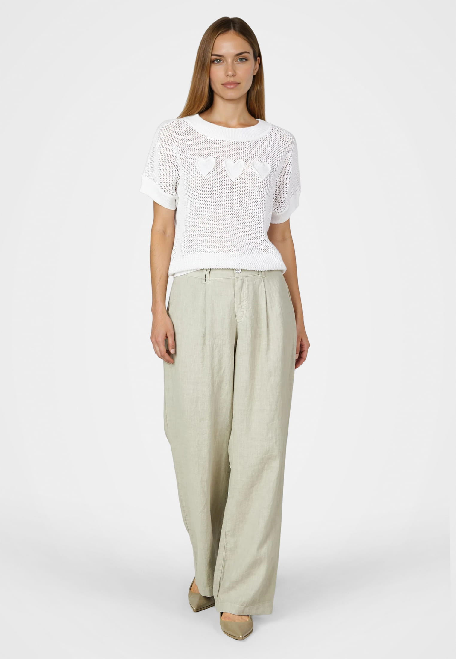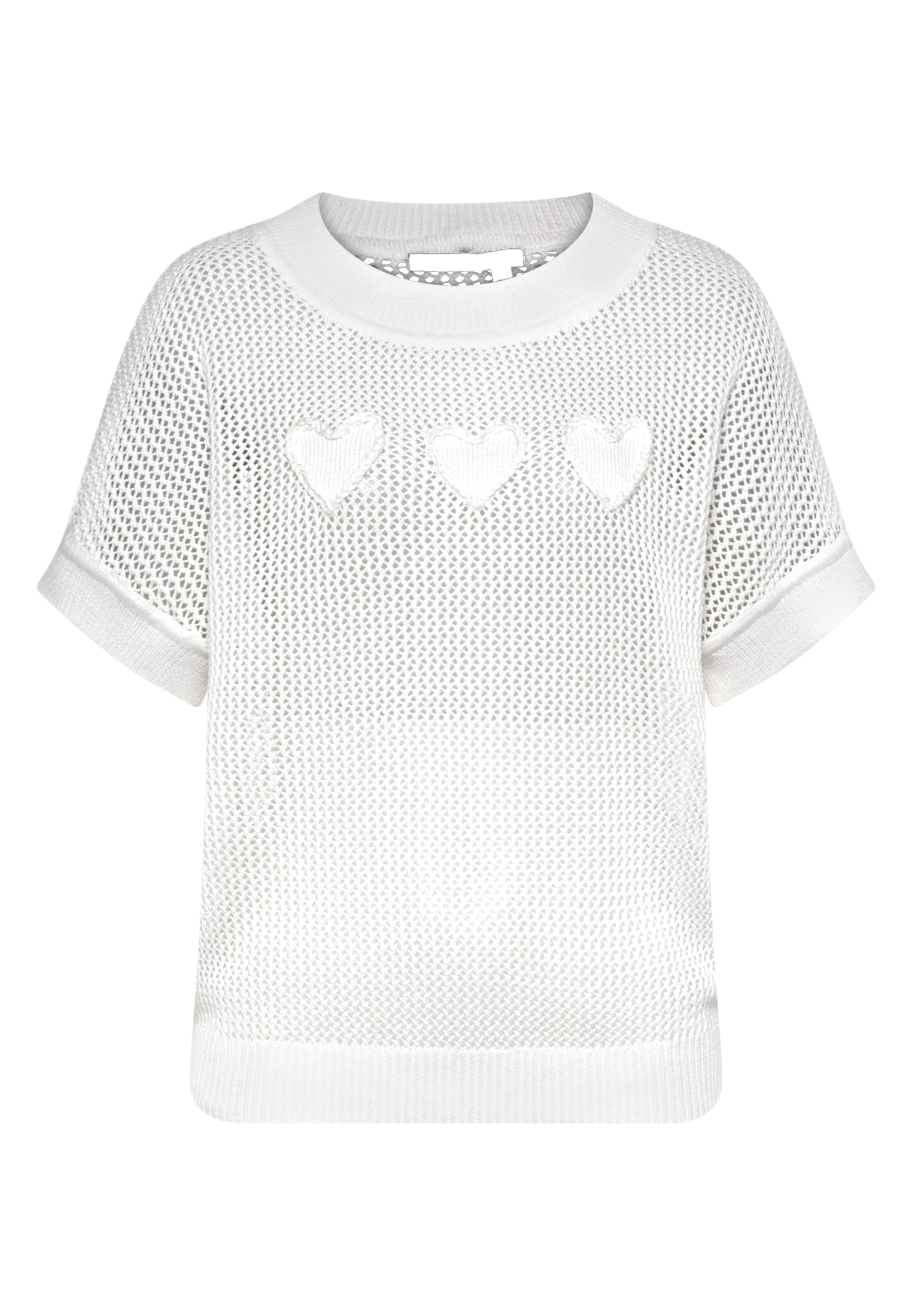 Mesh sweater with heart intarsia