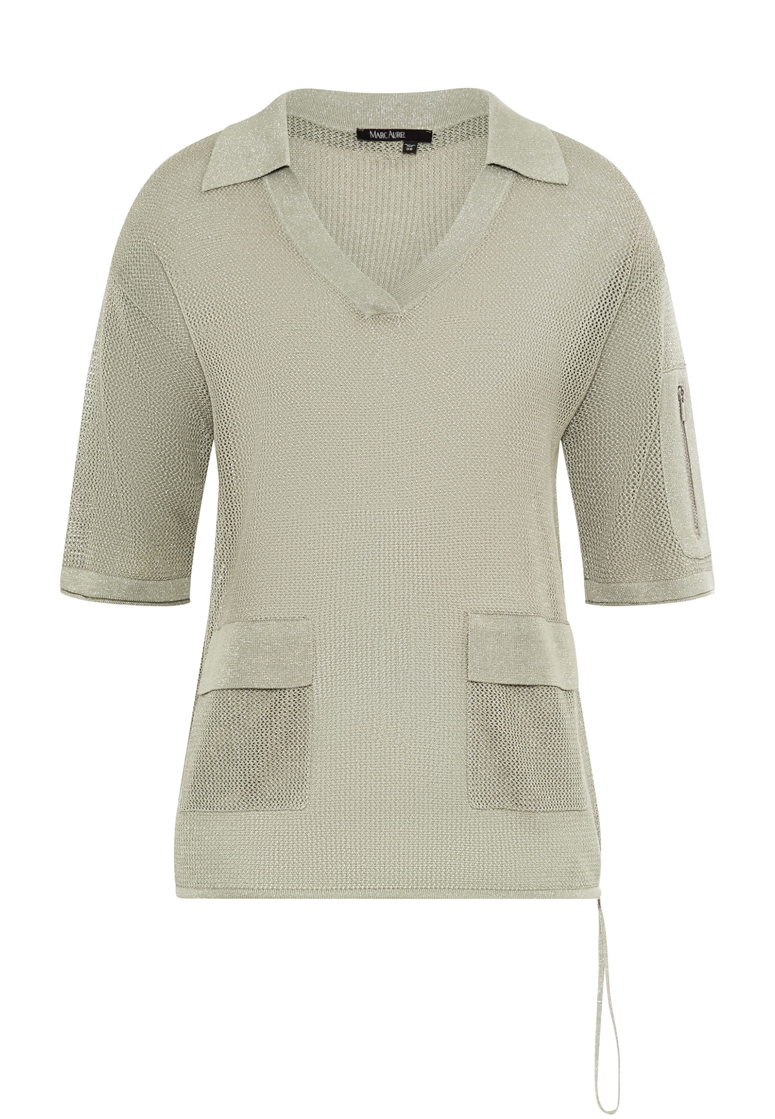 A summery statement in a fine mesh structure. This sweater made from soft lurex yarn brings a sporty lightness to the table with its polo collar. The sparkling surface provides a modern finish, ideal for days with stylish shine.
