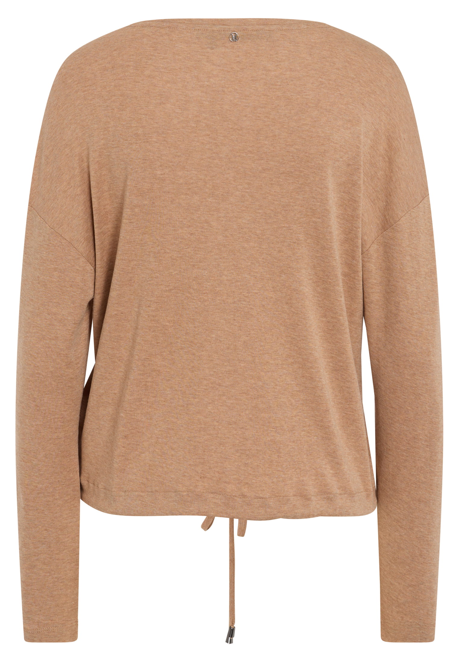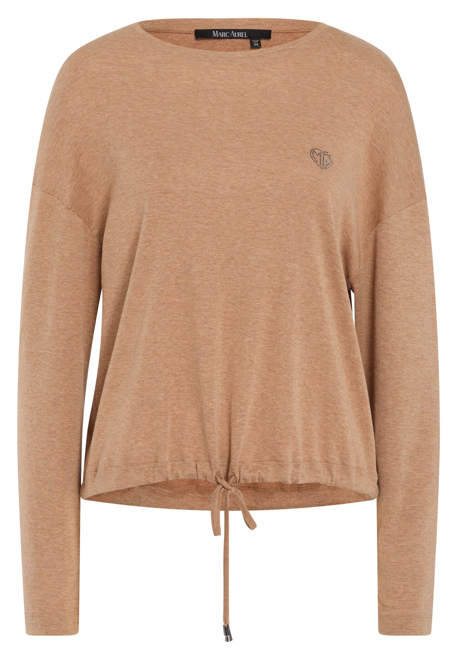 This slightly cropped shirt brings a trendy touch to the look with its drawstring. The soft cotton-modal blend ensures a comfortable fit, while the round neckline creates a classic look. Perfect for a fashionable appearance.