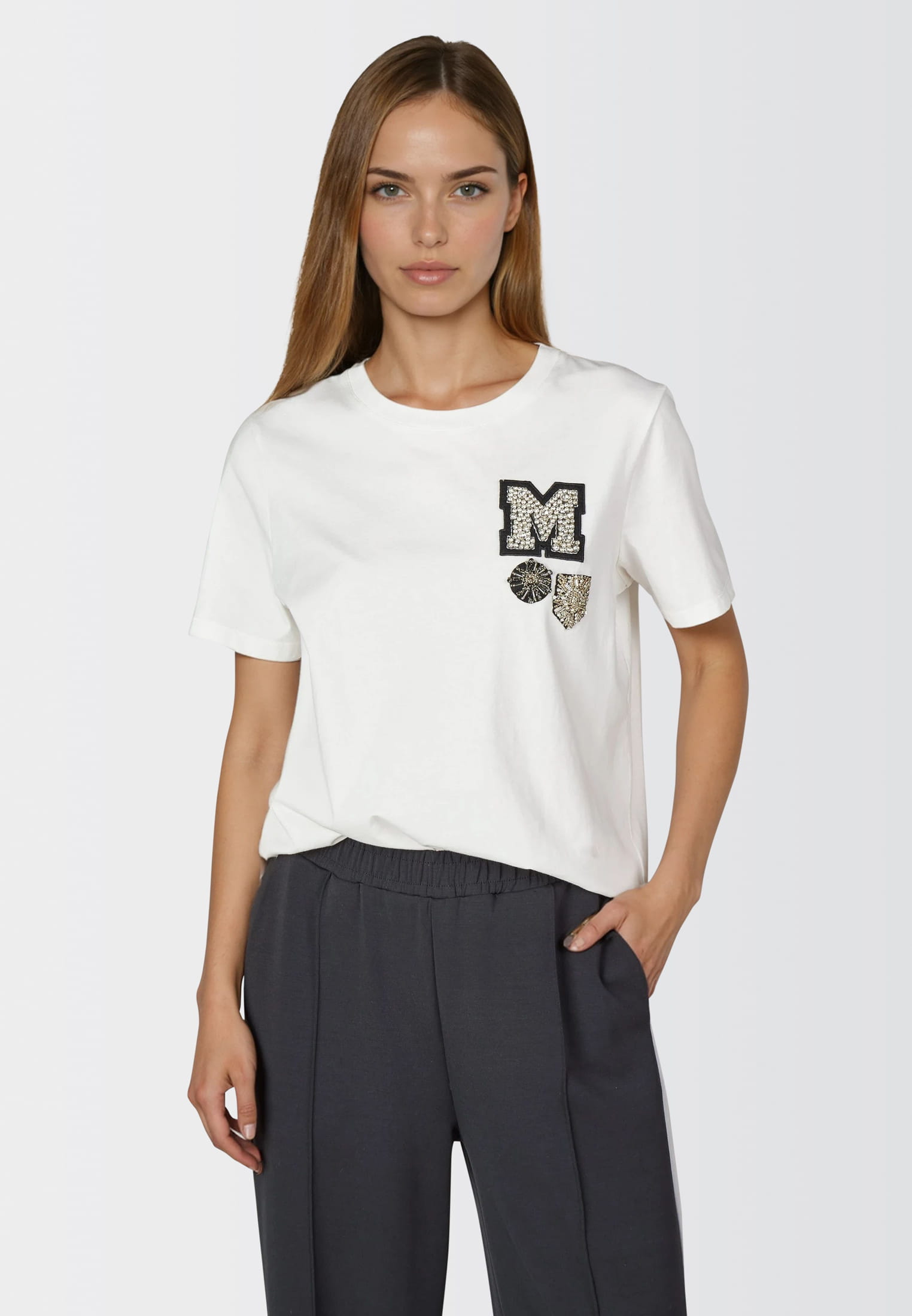 This T-shirt made of BCI Cotton impresses with lovely appliqués and a timeless design. The round neckline ensures a classic look, while the regular length offers versatile combination options. Perfect for a fashionable appearance.