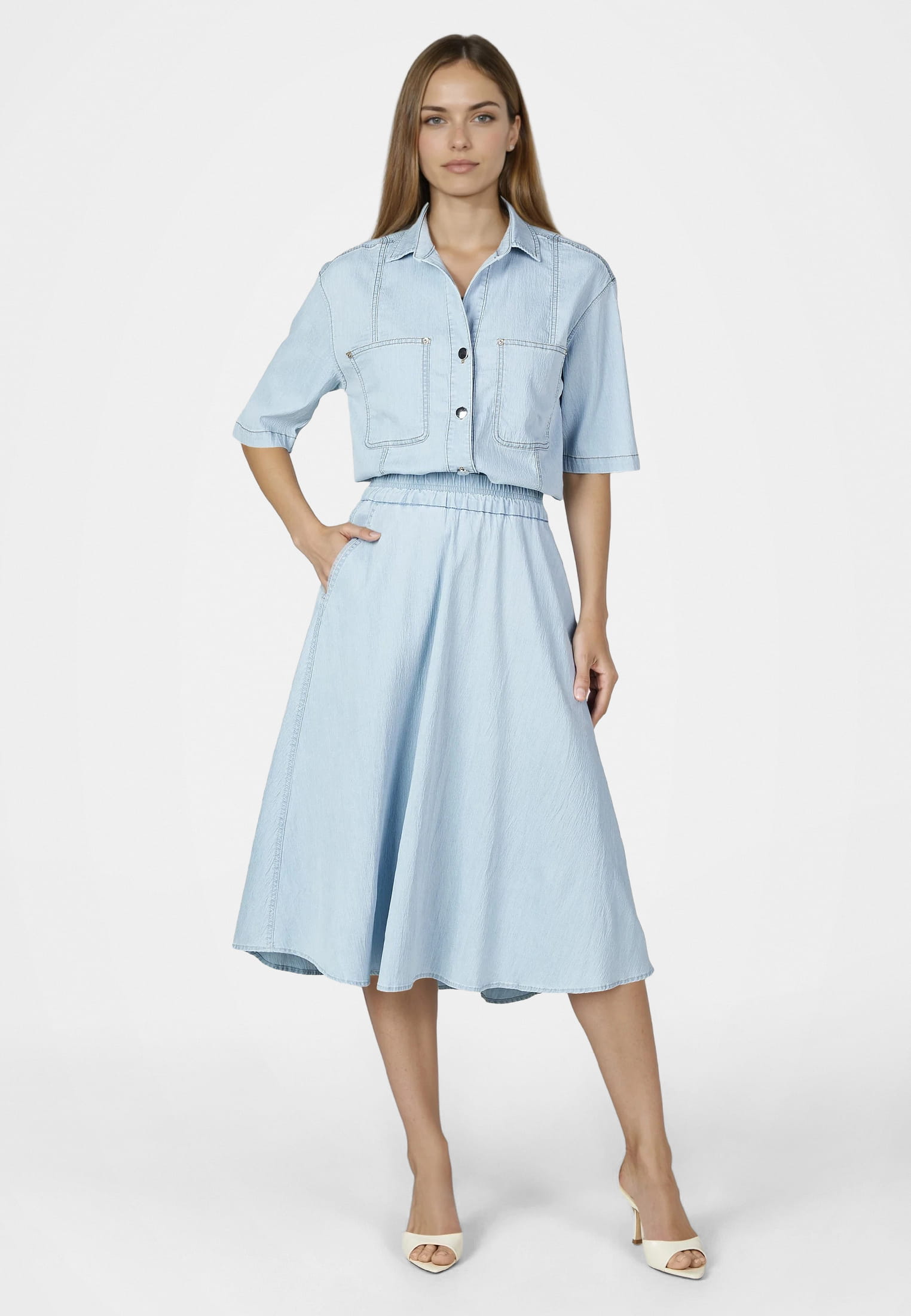 Ein Hemd mit lässiger Denim-Note. Die leichte Tencelmischung mit heller Blue-Waschung bringt Leichtigkeit in die klassische Hemdform. Aufgesetzte Brusttaschen, Hemdkragen und Chino-inspirierte Details machen dieses Modell zum Allrounder mit entspannter Wirkung. Ideal für einen modischen und zugleich edlen Auftritt.