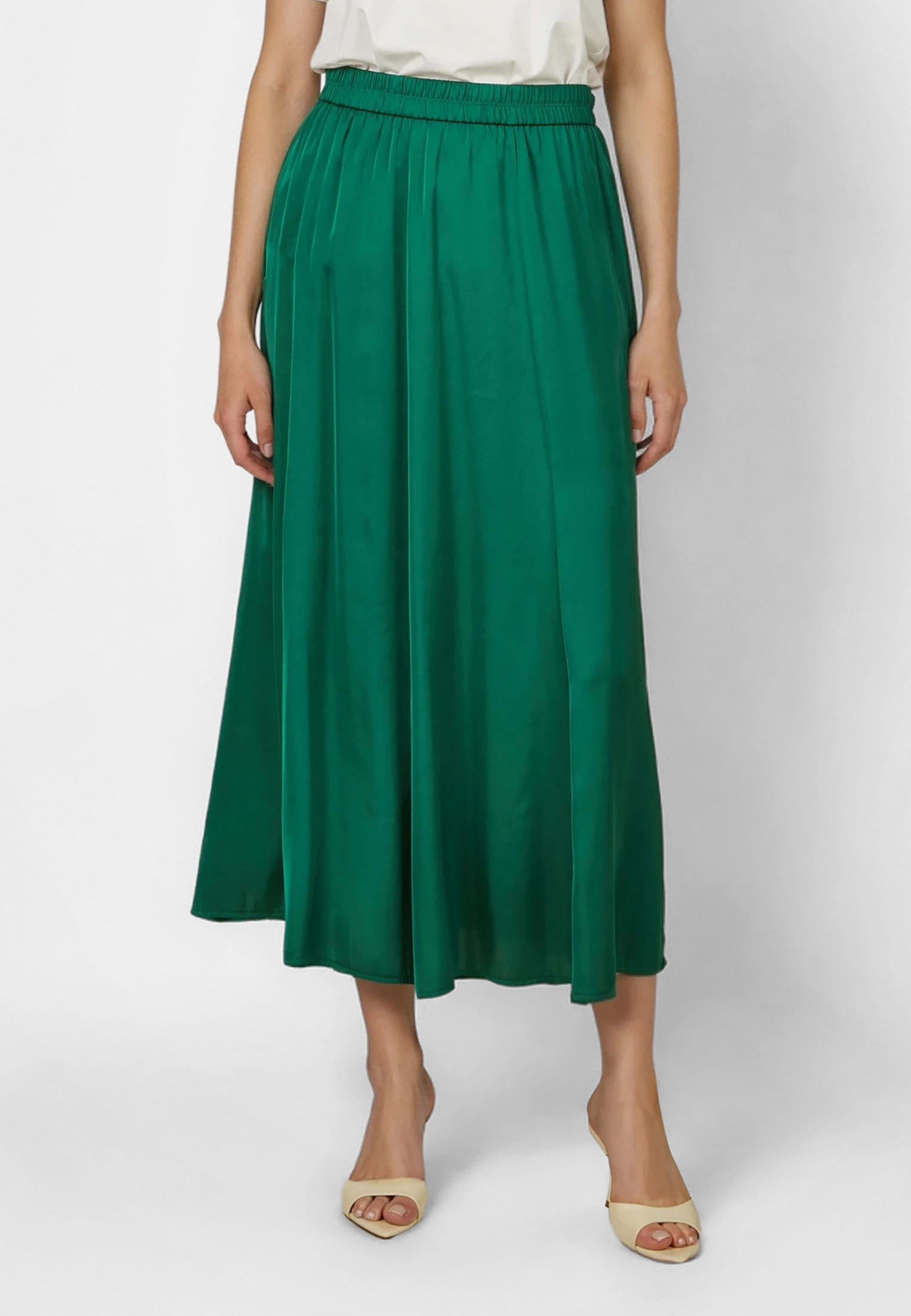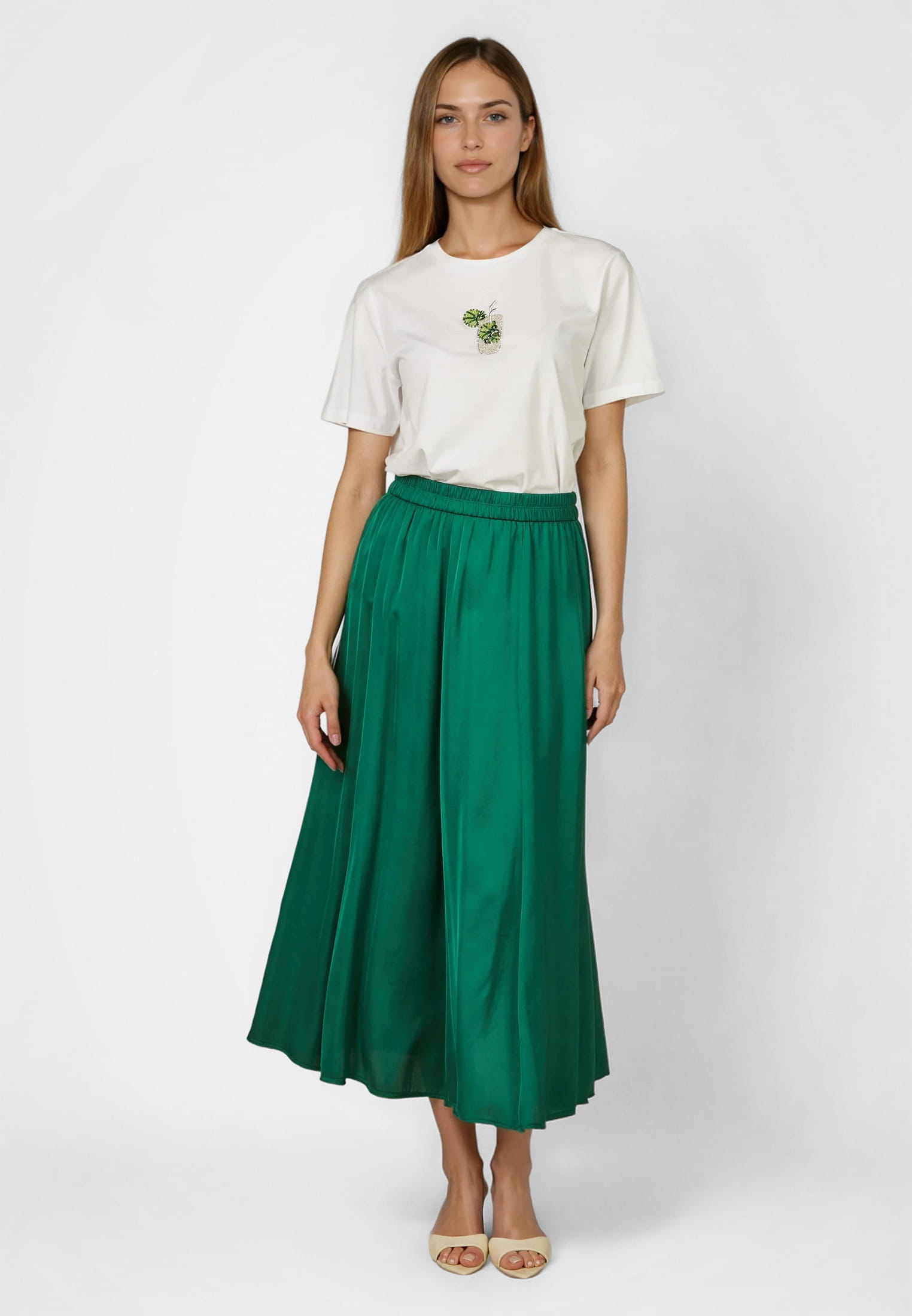 Sanft schimmernd und leicht im Fall, dieser Rock aus edlem Viskose-Satin zeigt sich von seiner eleganten Seite. Der Bahnen-Schnitt sorgt für schöne Bewegung, während ein elastisches Jogger-Bündchen für entspannten Sitz steht. Der farbige Print bringt Charakter ins Design.
