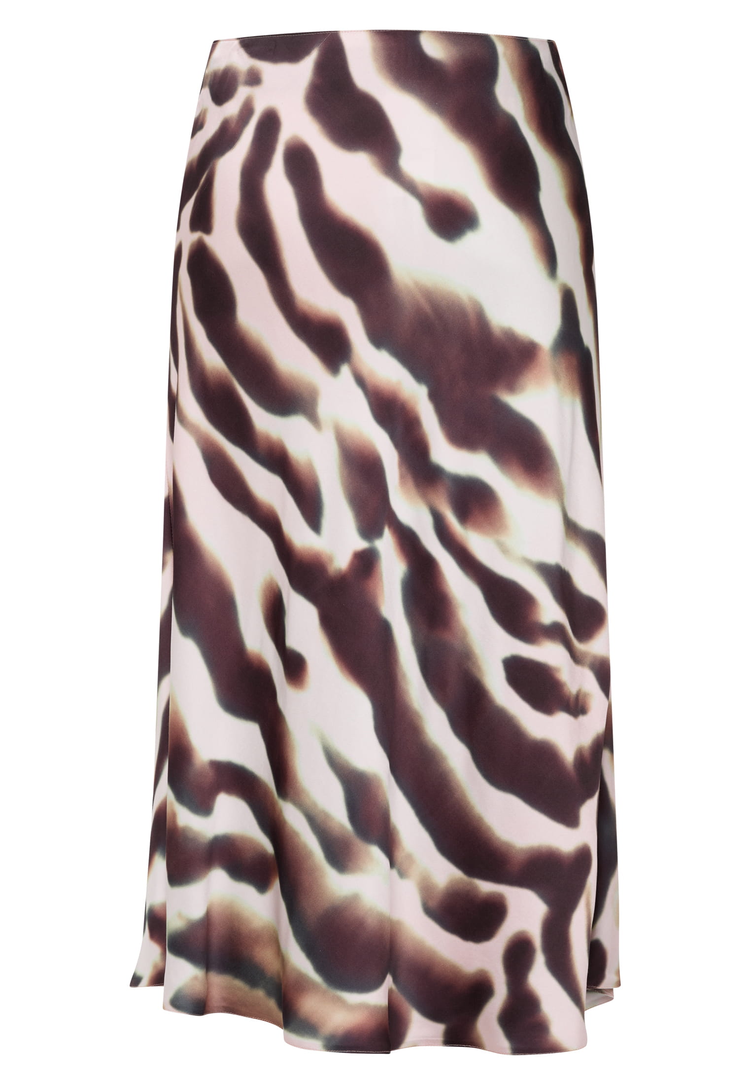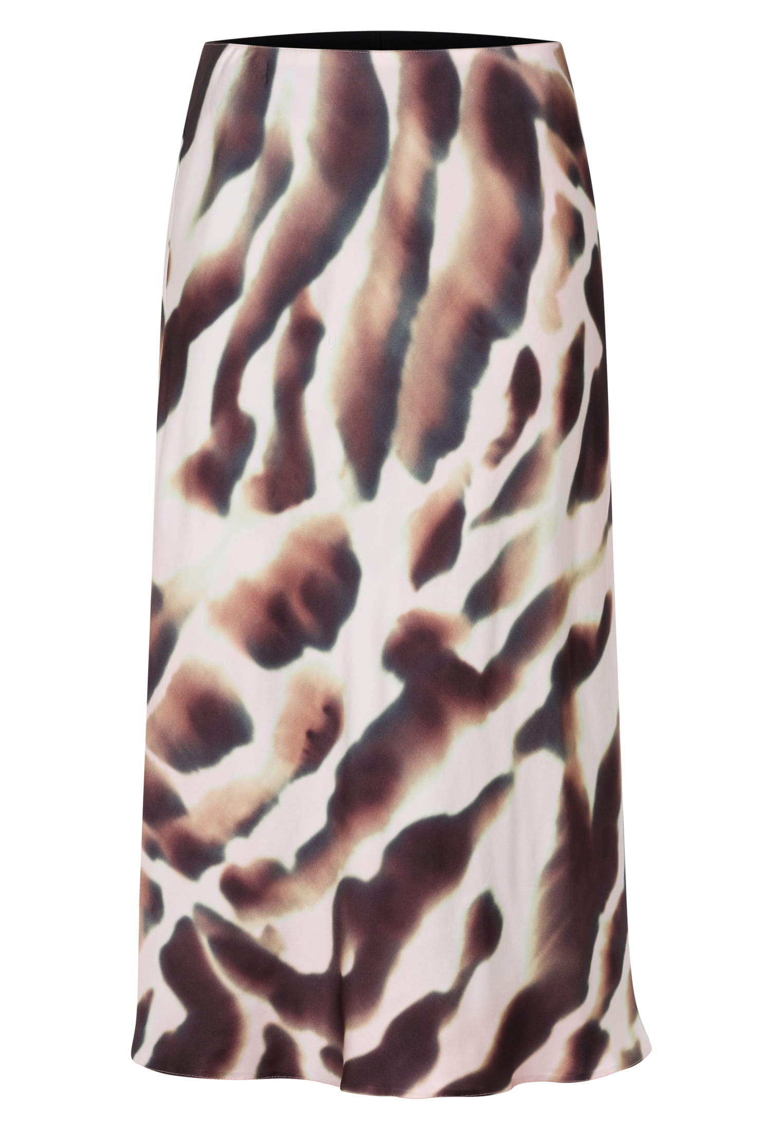 Dieser Midi-Rock aus Viskose-Satin besticht durch seinen abstrakten Animalprint und einen fließenden Schrägschnitt. Die leichte, weiche Textur sorgt für angenehmen Tragekomfort, während die Midilänge für vielseitige Styling-Optionen geeignet ist. Ideal für einen modischen und zugleich edlen Auftritt.