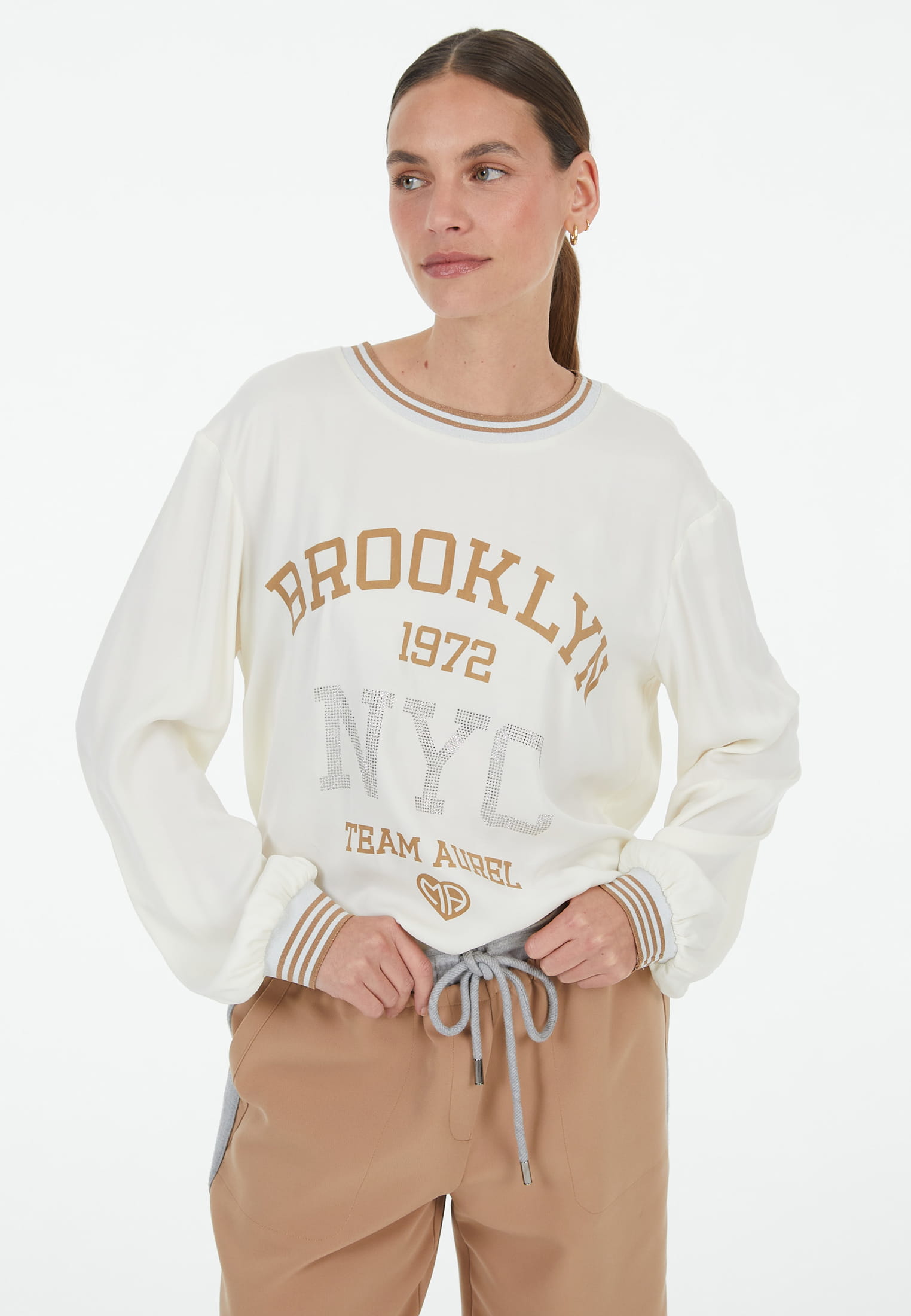 Dieses Satin-Top aus einer edlen Viskosemischung kombiniert sportiven Charme mit glänzender Eleganz. Der Rundhalsausschnitt und die Lurex Ringel-Strickbündchen setzen moderne Akzente. Seitenschlitze verleihen dem Design eine lockere Passform. Ideal für einen modischen und zugleich edlen Auftritt.