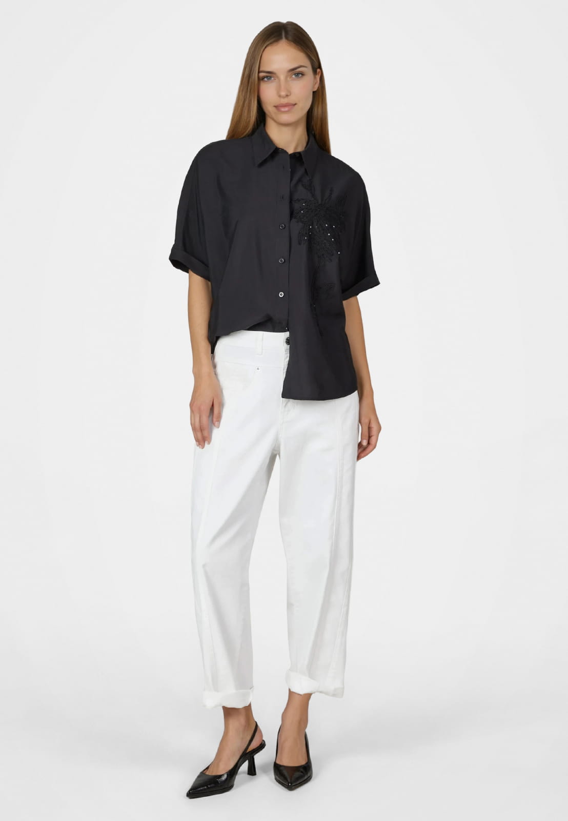 Ob mit oder ohne Ärmel: Hauptsache, Boxy-Bluse. Die weit fallende Schnittform lockert den klassischen Style von Blusen ungemein auf und offenbart gleich mehrere Tragevarianten: Zugeknöpft, bringen sie Coolness ins Business-Outfit und extra viel Entspanntheit in den Freizeitlook. Durch die fast quadratische Form lässt sich die Bluse aber auch einfach locker auf der Taille knoten. Sie haben die Wahl!